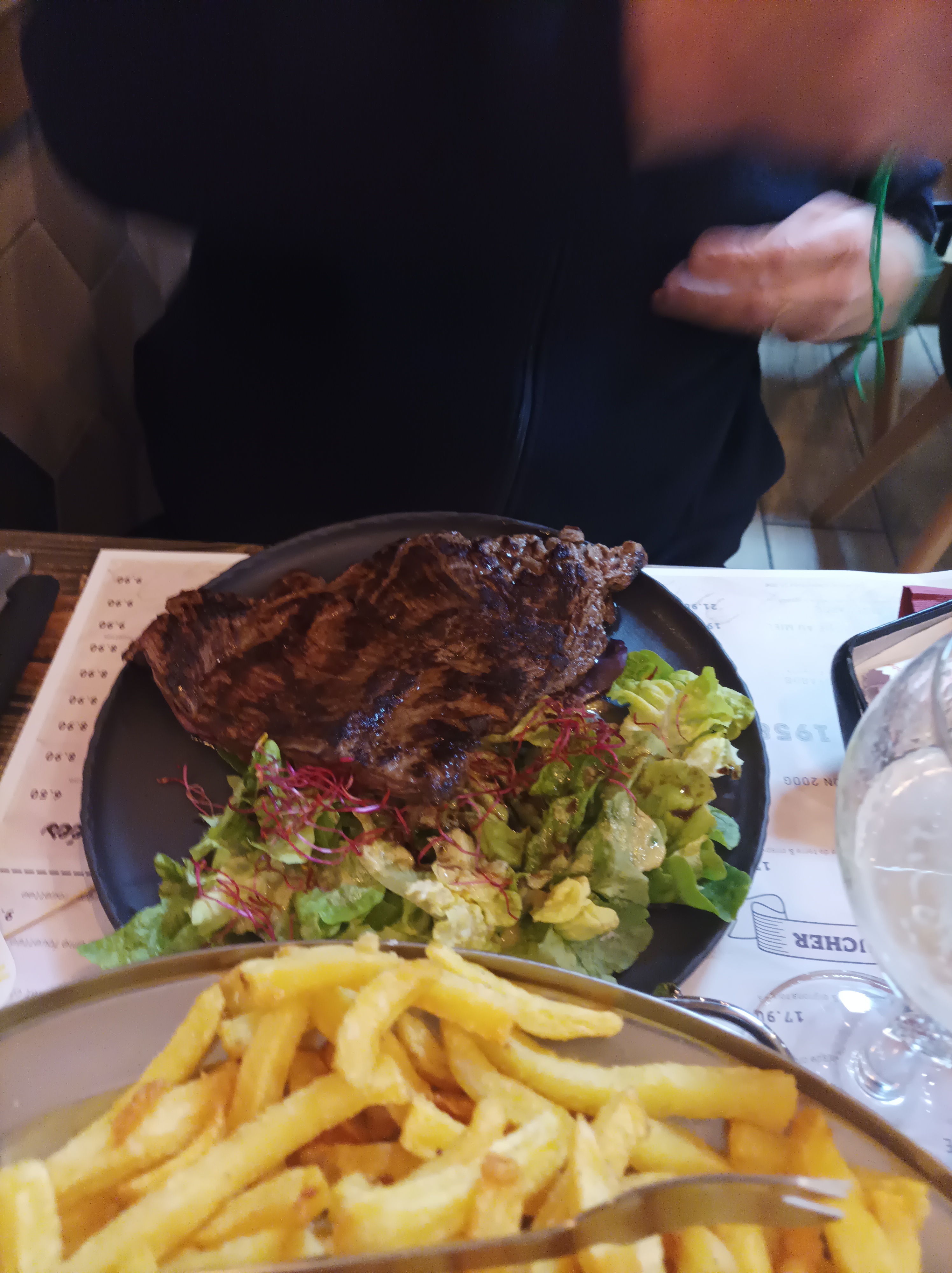 Nourriture très bonne. Mais le service des frites est très lent. Je trouve ça vraiment dommage d'avoir transformé un super restau familial en usine à fric. La promesse du restau, c'est frites à volonté, il faut pouvoir les servir rapidement, pas au bout de 40mn. Avant, on avait le choix entre deux plats, mais les frites arrivaient très vite. Aujourd'hui, les prix ont doublé, le choix est énorme mais le résultat est moins bon.