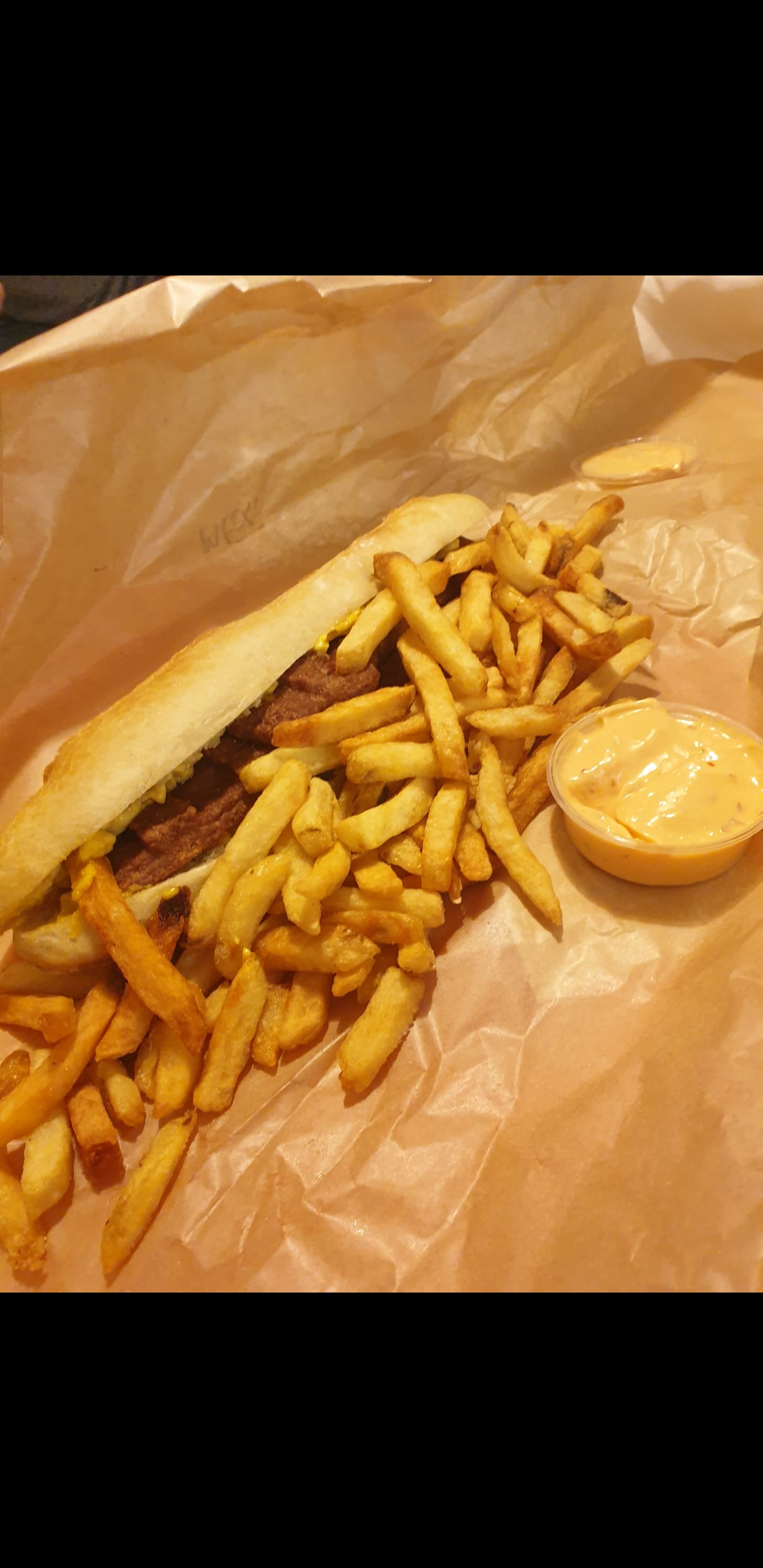 Des vraies frites comme dans les baraques du Nord (pas du congelé) et la quantité. ...énorme un grand choix de sauces Gérants sympathiques