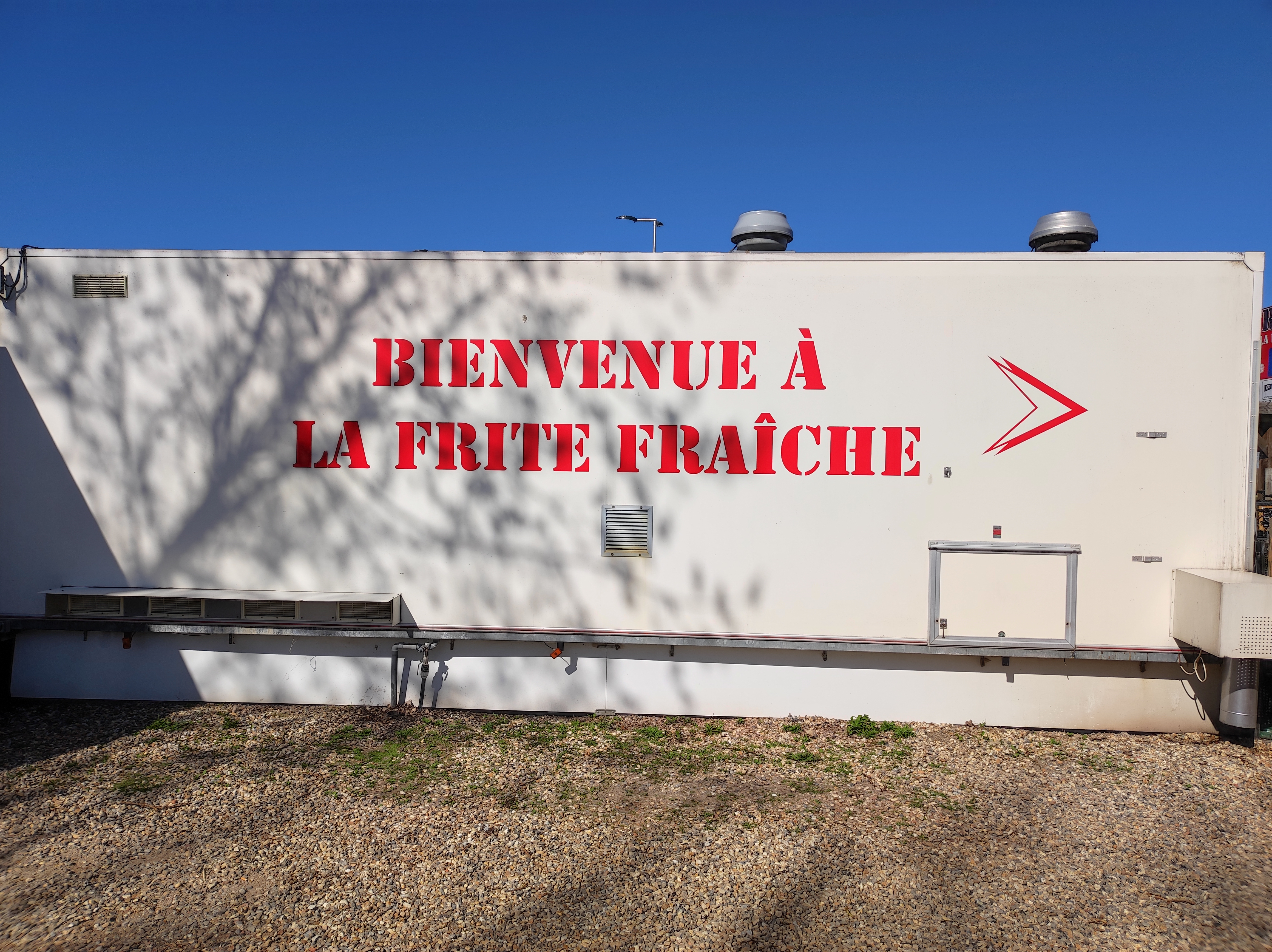 Merci, Arrêt Casse Croûte sur la route, rond point, juste avant Berck, cabane à frites, nom éloquent La frite fraîche. Équipe super sympa, des hamburgers grand comme une main et demi (Au Maroil, un delice) et des Frites effectivement fraîche, un délice, et en terme de quantité, ben, deux repas. Merci à toute l'équipe, continuez. Bon courage.