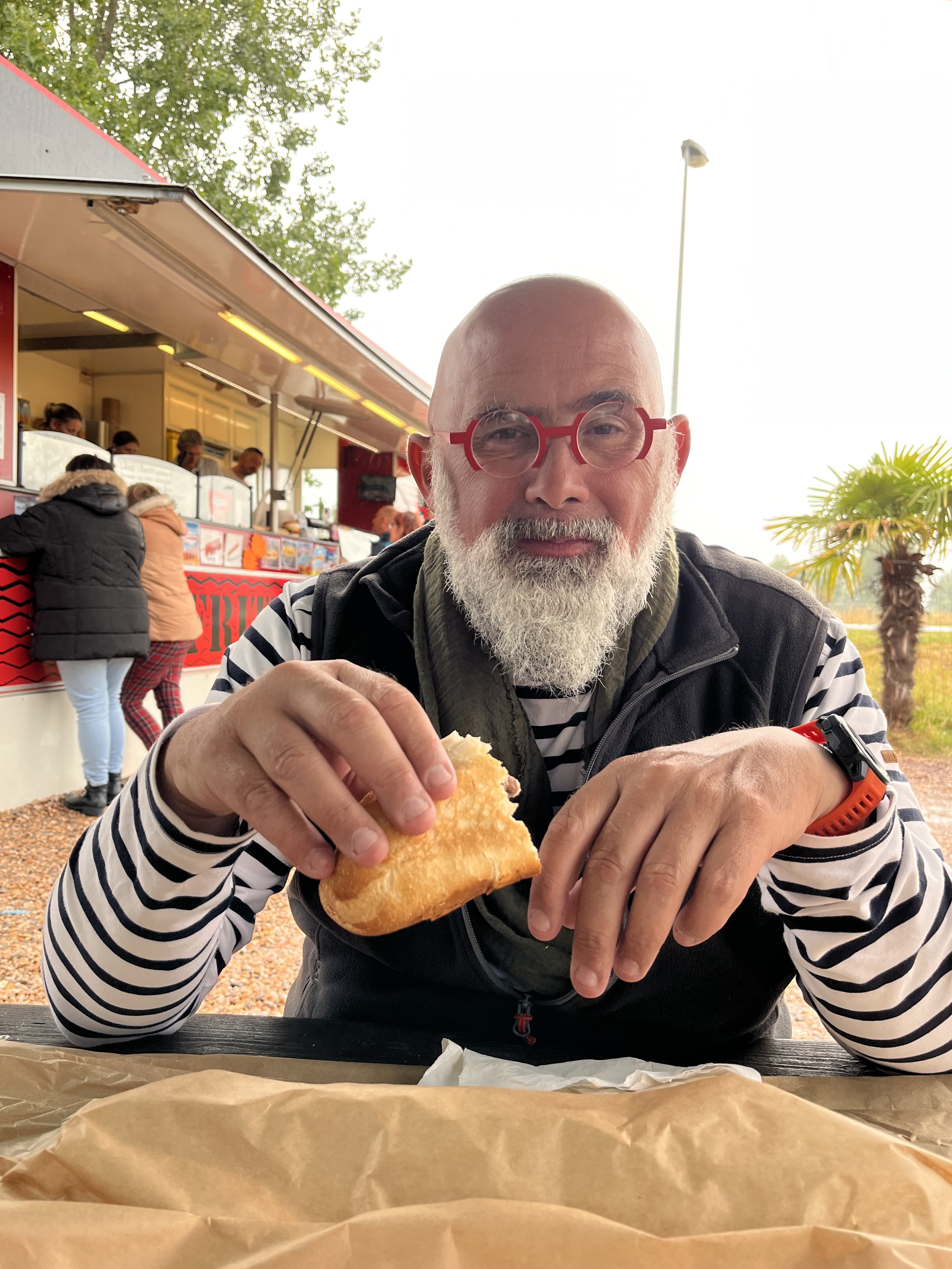 Je tourne en rond dans la tempête depuis un moment avec le camping car et Maya et je tombe sur cette friterie que j'avais déjà repérée il y a quelques mois 5 km avant Berck....les alentours du parking ont souffert mais au moins les arbres abattus ne tomberont plus. 2.50 euros un petit paquet de frites 🍟 🍟 🍟 🍟 qui, avec Maya nous a fait 2 repas avec mon osso buco préparé le matin.....FRITES FRAÎCHES ET TRÈS BONNES......comme on les aime......Après cette nuit de tempête ça requinque.......Grand parking....excellente convivialité..