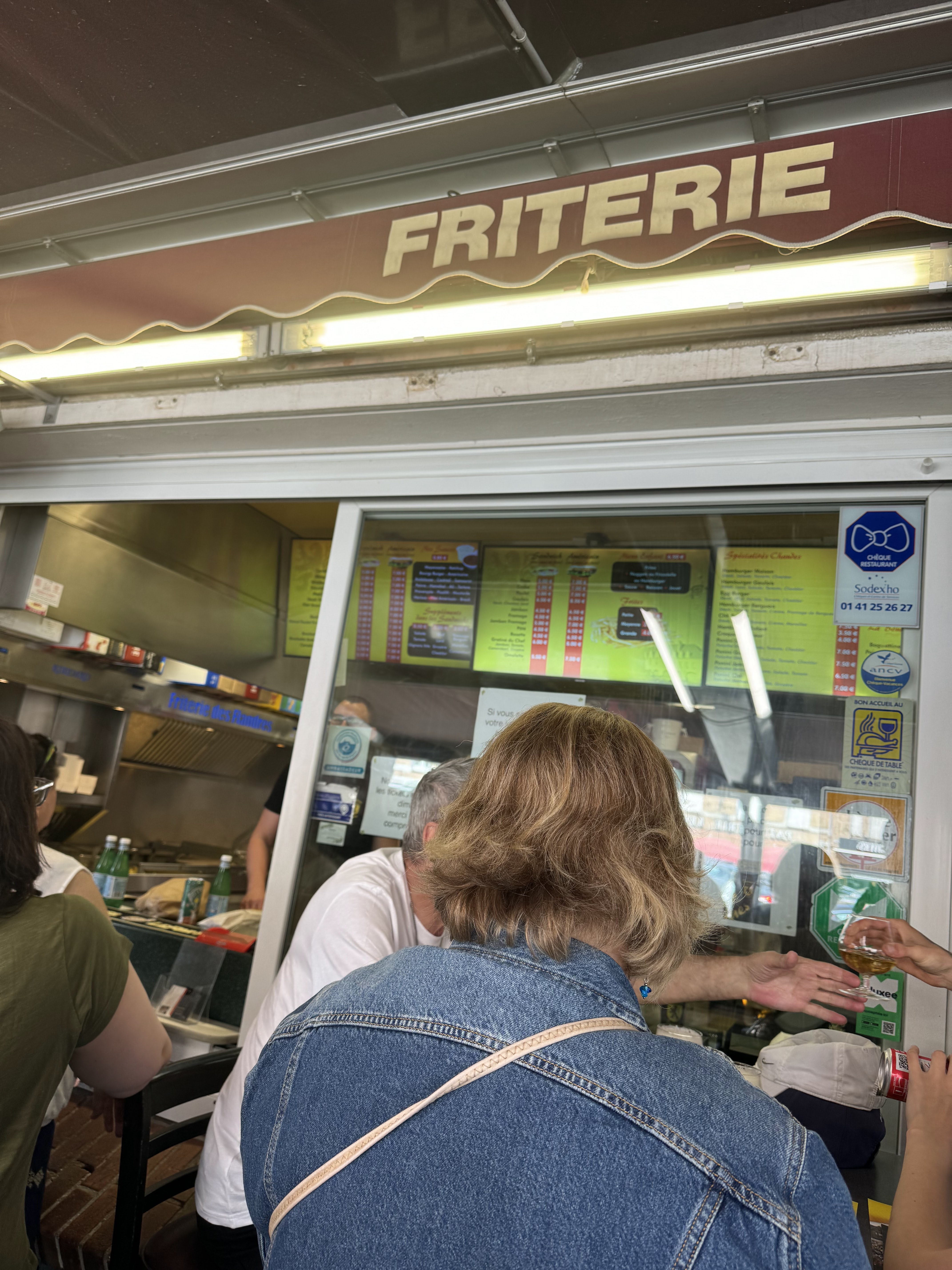 Accueil nikel possibilité de prendre à emporter et mange dans les cafés au alentour si il n'y a plus de place a la friterie. Perso avons mange au café de la poste avec une ambiance bien Chti