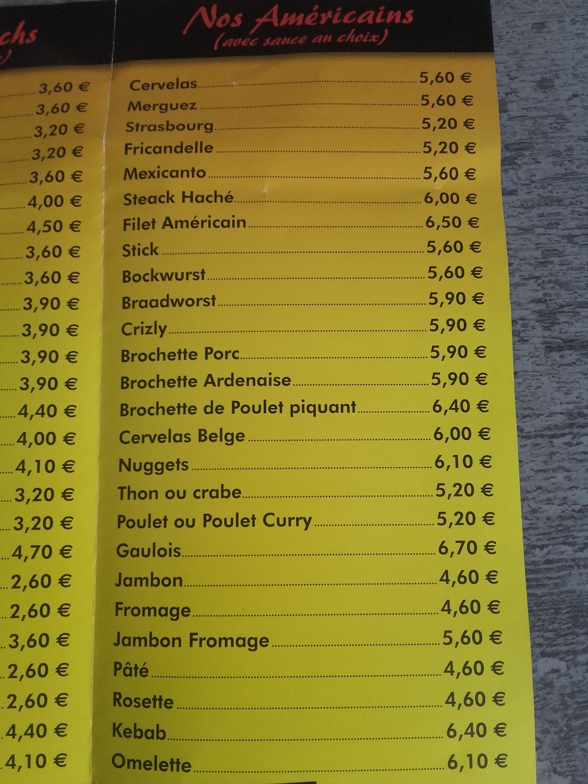 Pris un américain kebabs en terrasse le 17 septembre. Prix 7,60 au lieu de 4,60. De plus les crudités sont en option, sauf qu'on vous les proposent pas, du coup vous avez droit à un bout de baguette avec de la viande à kebab pour 7,60€ + 2€ la bouteille d'eau de 50 Cm. Gloups..j'ai payé moins cher à Marseille.