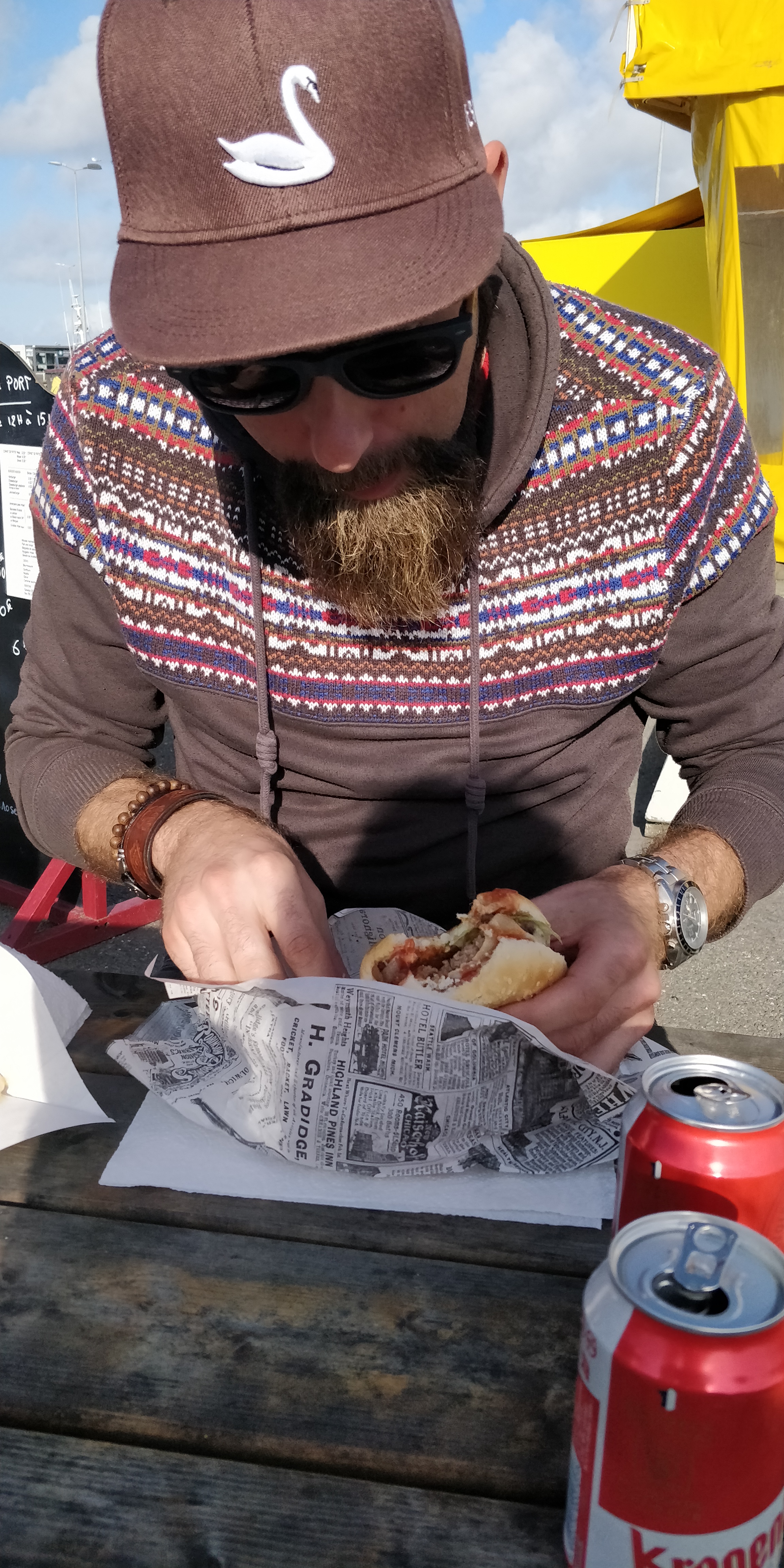 Fish and chips et hamburgers très savoureux. Service super sympa et bonne nourriture malgré quelques gouttes de pluie. Nous recommandons!