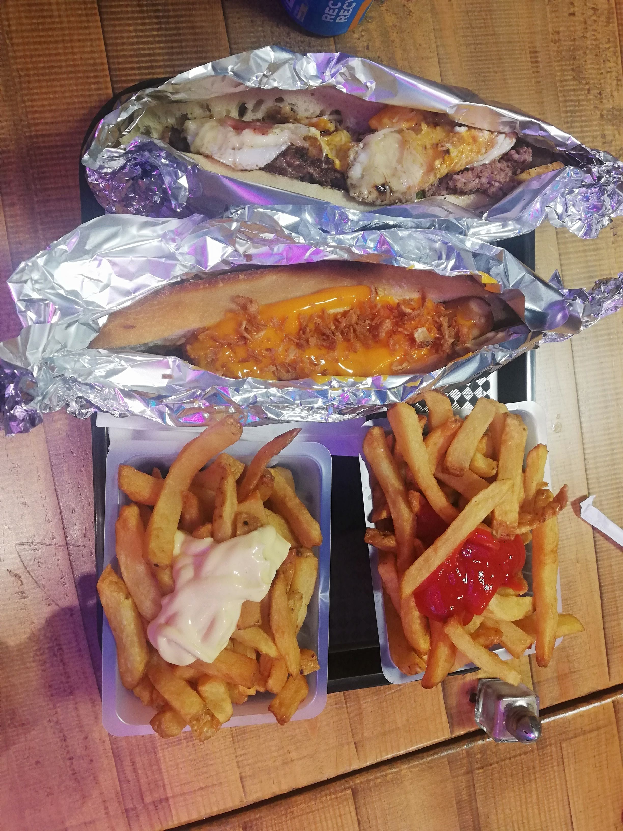On (2 adultes et 2 enfants) voulait aller chez le petit copain plus haut mais comme il était fermé nous avons voulu essayer, au vu de ce que j'avais lu dans le journal. Le collaborateur qui nous a servis s'est vite retrouvé débordé (en même temps il était tout seul). C'est peut-être pour ça qu'il a oublié de faire chauffer la saucisse du hot-dog ou d'assaisonner les frites et la viande ?! La promesse vue de l'extérieure n'est pas le reflet de ce qu'on trouve à l'intérieur. Dommage car le concept est sympa