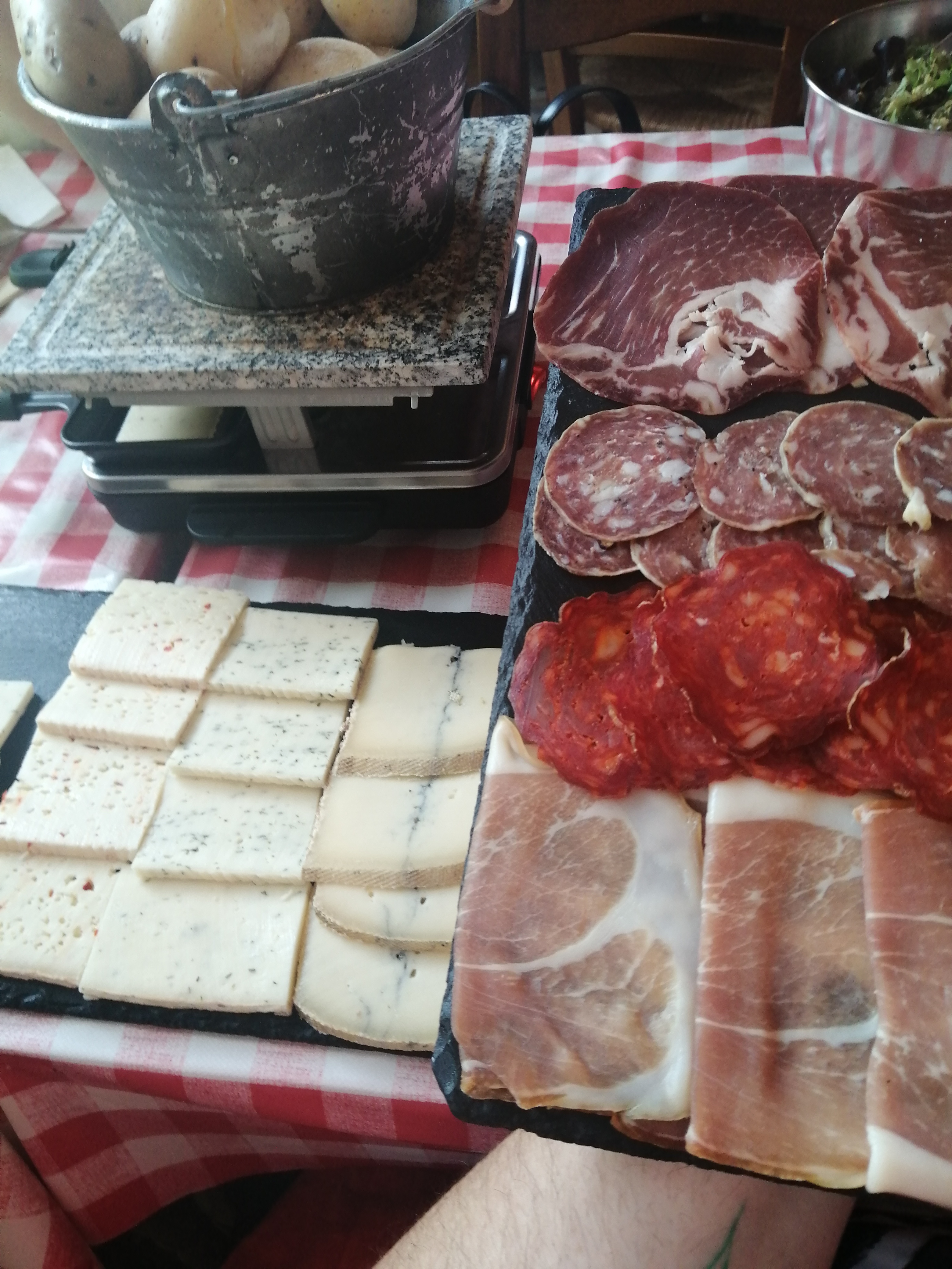 Assiette de tapas, Raclette à volonté, mais fromages aromatisées et non nature: piment d'espelette, ail des ours, truffe...