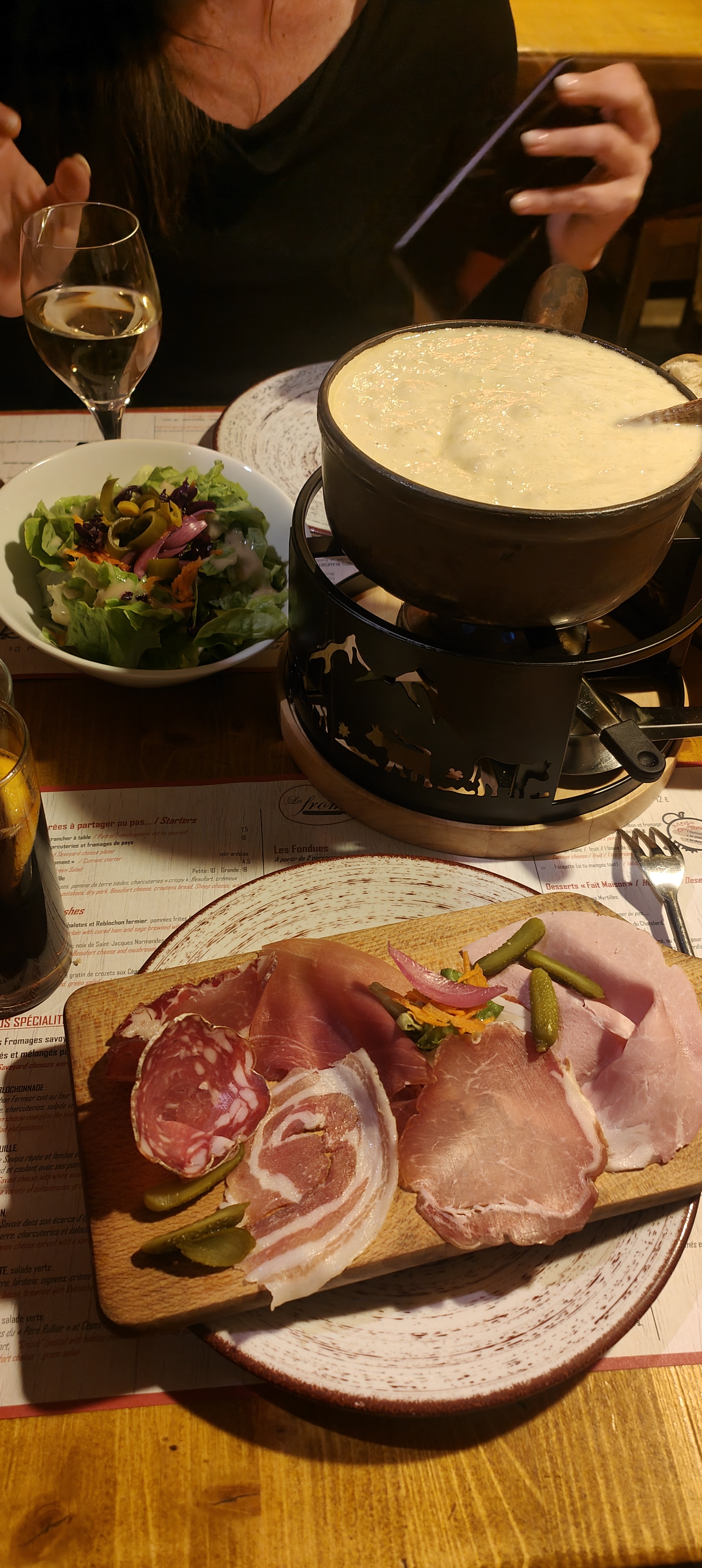 La fondue était excellente, bon fromage et bonnes charcuteries. Le service était agréable. Je recommande !