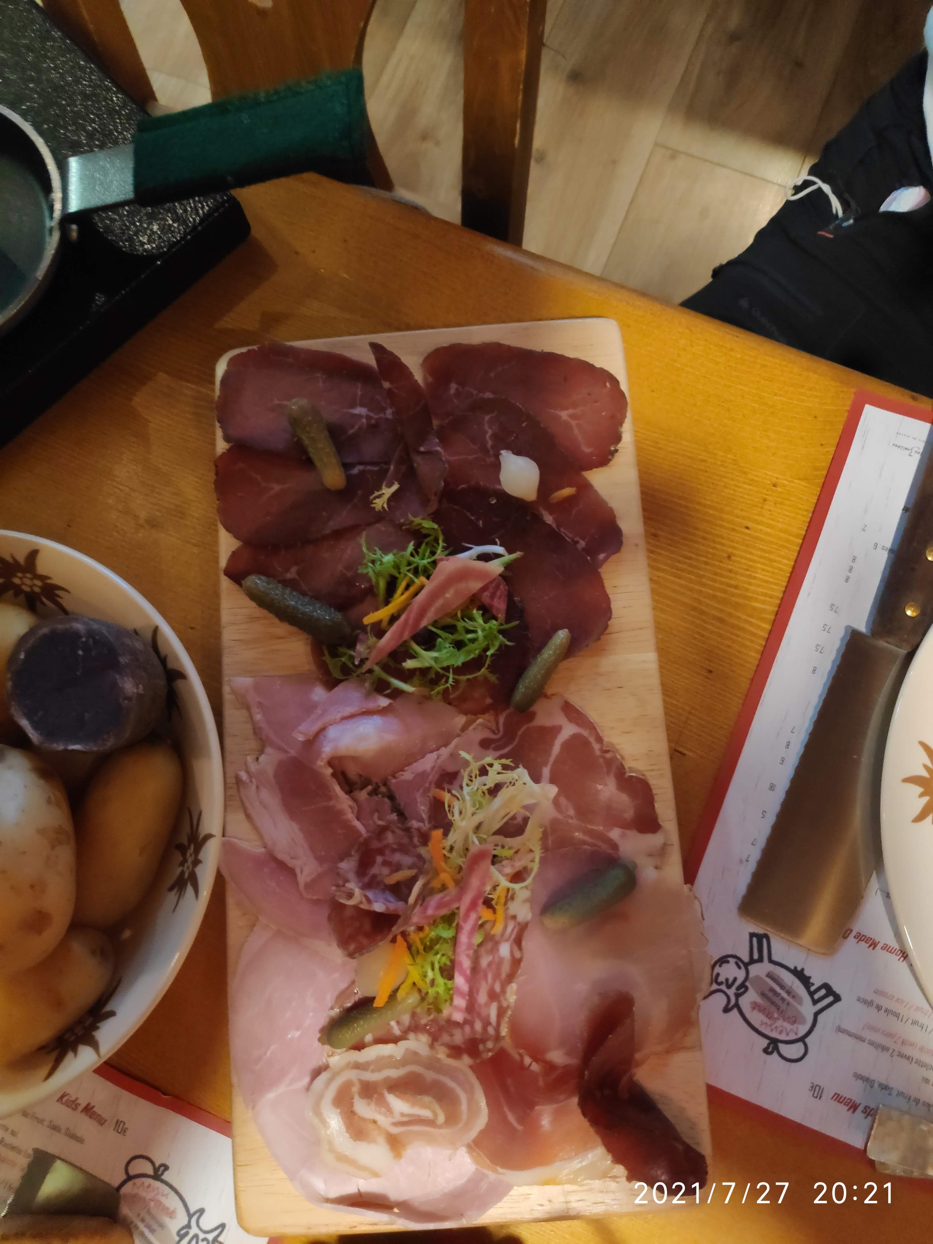Nous avons pris la raclette un délice , la charcuterie est excellente .