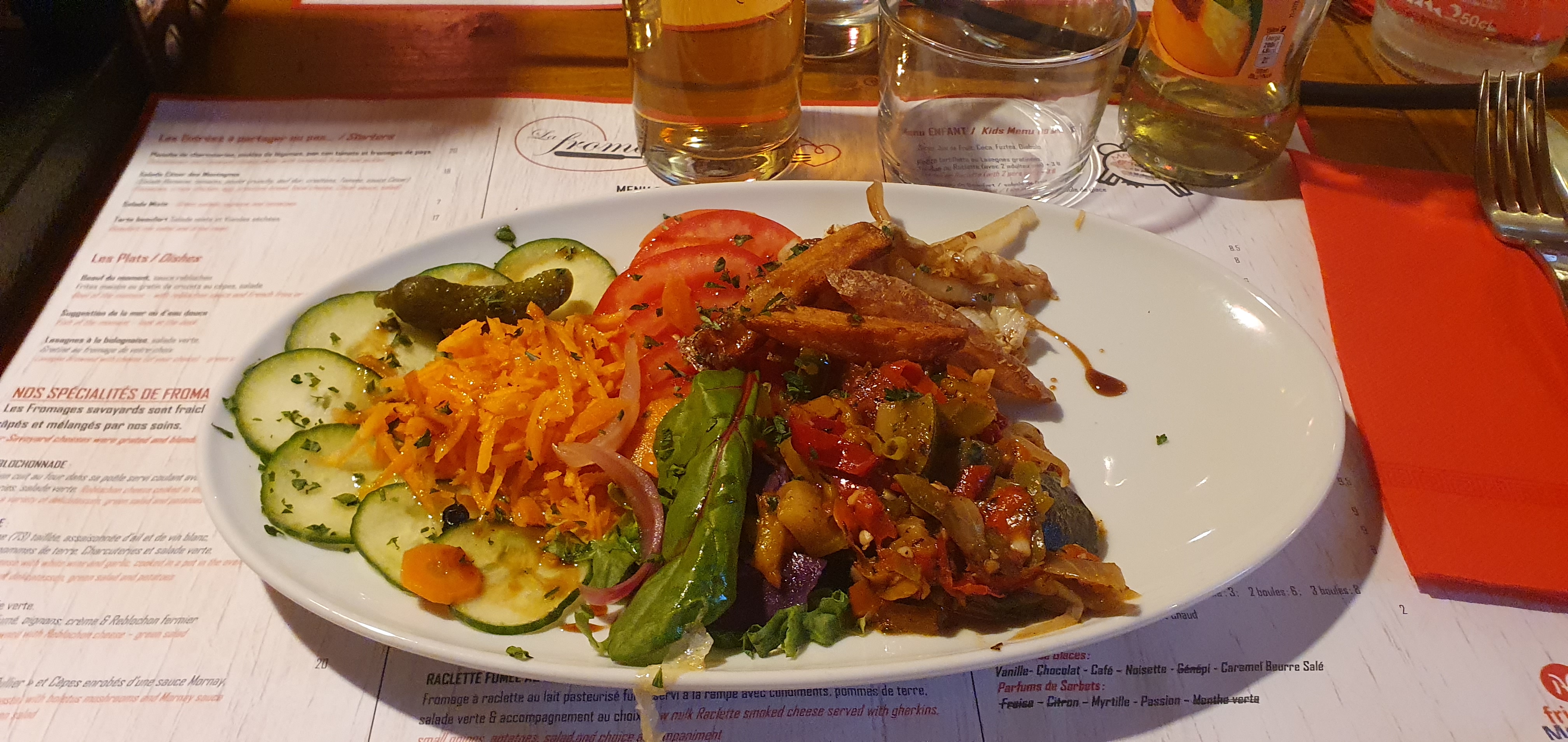 C’était top. Plein de variantes aux plats typiques savoyards. La crozi-cèpes régale, la matouille aussi. Et la tarte aux myrtilles sauvages, un délice.