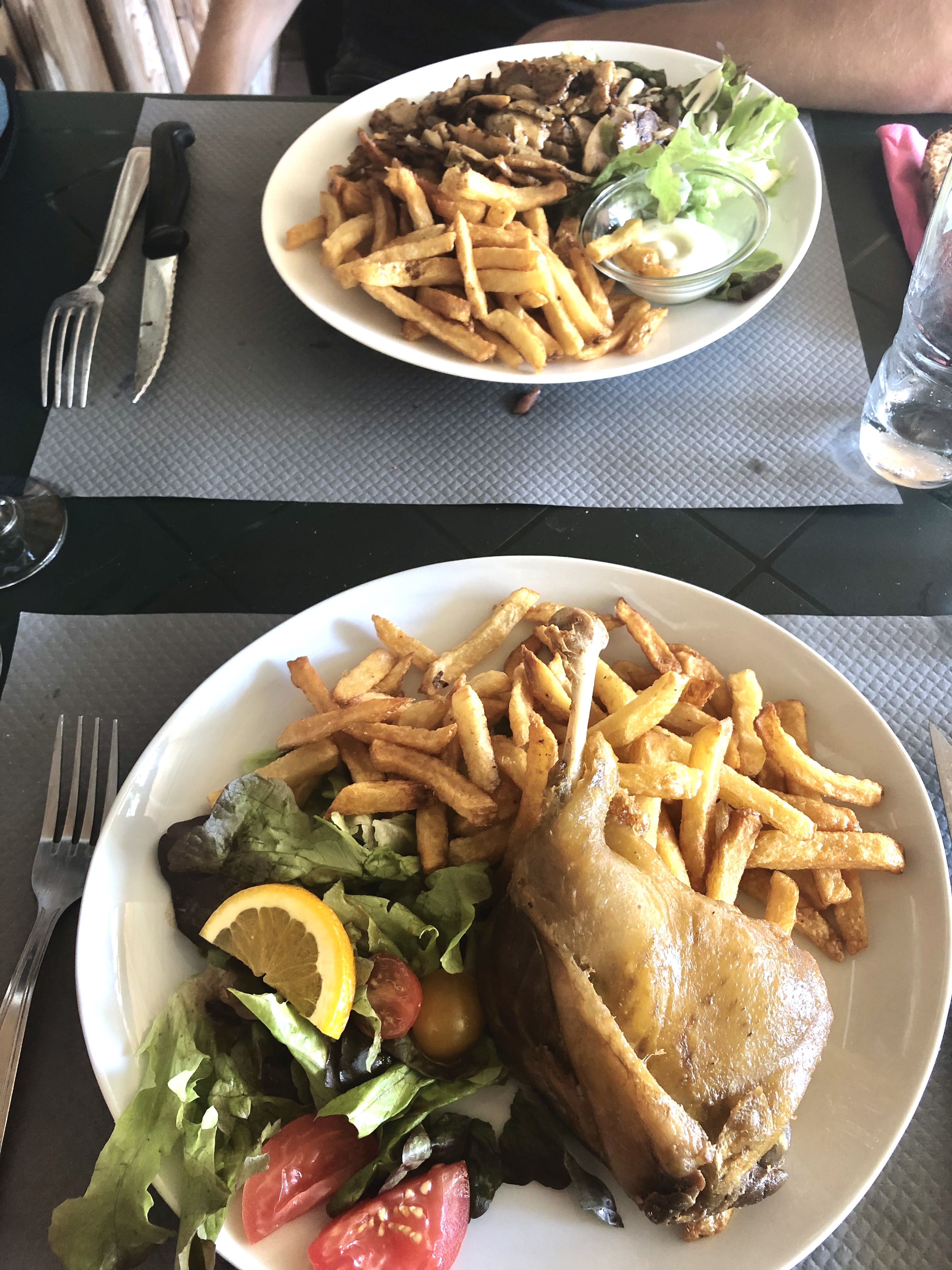 Nous y allons à chaque fois que nous descendons dans la région, nous ne sommes jamais déçu que ça soit en terme de qualité. quantité et tarifaire, celui-ci est plus qu’abordable👍 Un plat / dessert suffit largement ! Je recommande ce restaurant très accueillant et chaleureux (piscine + vue sur la Dordogne avec les falaises) ☺️ - Salade de rocamadour / salade de gésier - Confit de canard / assiette kebab - Boule de glace yaourt et citron vert