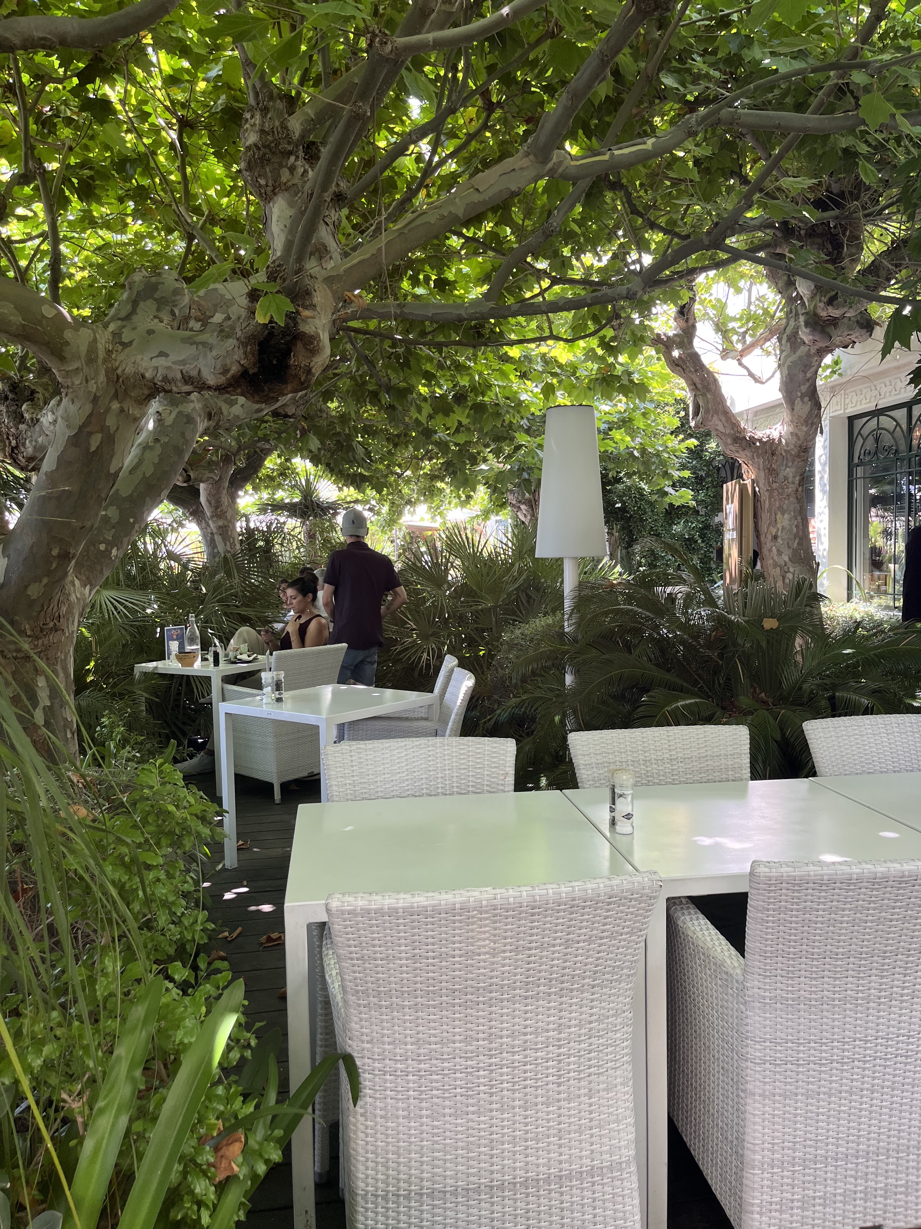 Après un premier essai très agréable l'an passé, nous avons décidé de retourner dîner dans ce bel endroit, hors du temps, du bruit et de la foule des touristes... Notre impression se confirme ! Très bonne ambiance, la musique peut-être un poil trop fort (nous étions assez près des musiciens). Une impression de bien-être discret malgré la promenade piétonne à quelques mètres, un professionnalisme très correct... Nous avons dégusté de nouvelles préparations et nous sommes régalés cette fois encore. Un excellent moment au grand air, à l'abri d'une végétation luxuriante, le bruit de la mer en prime ! PARFAIT !
