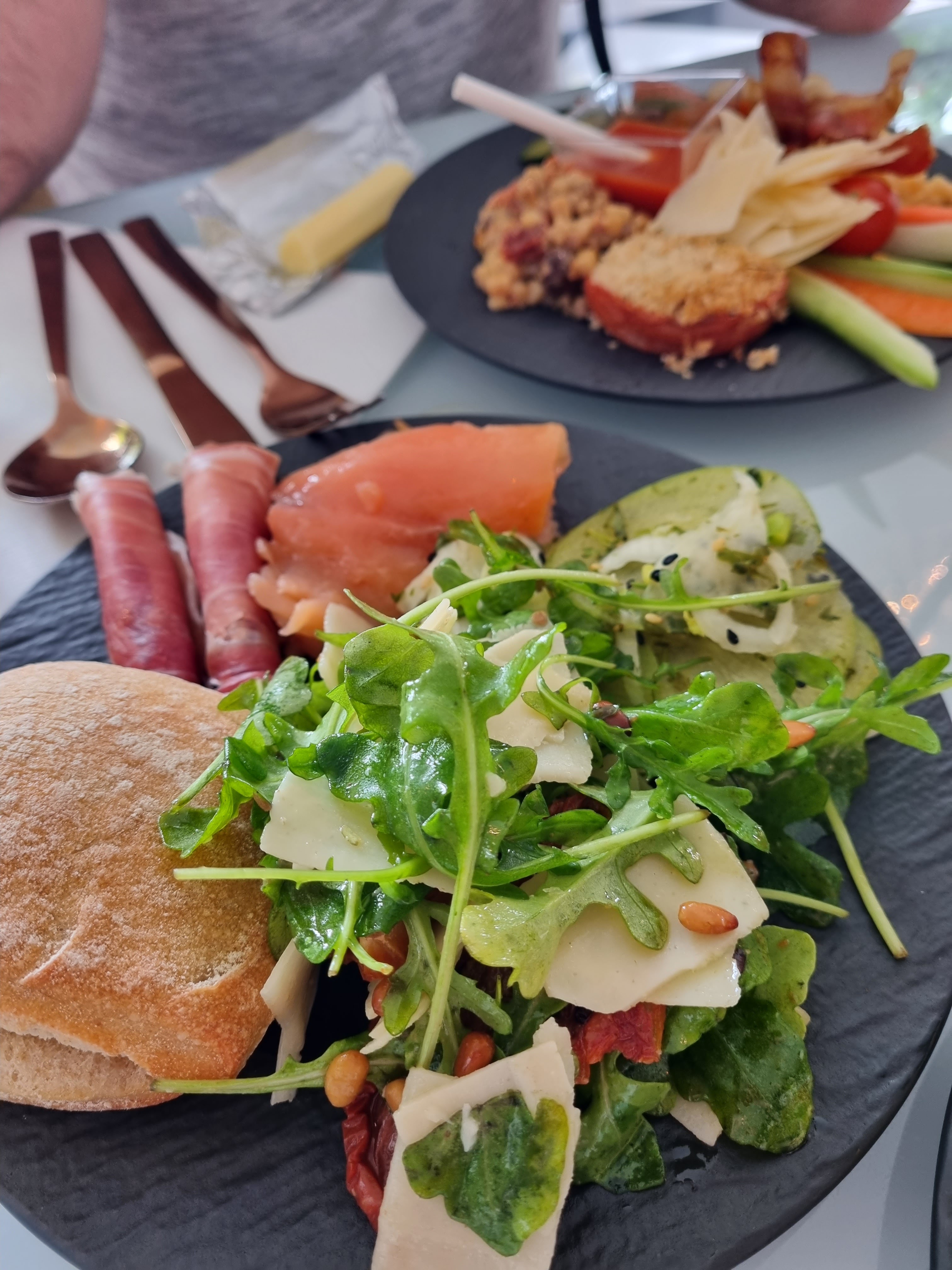 Super formule de brunch. Si vous y allez quand il fait beau, privilégiez la terrasse, très végétale, avec le bruit des vagues en fond sonore. Personnel attentionné, mix sucré salé juste comme il faut, choix suffisant avec la qualité qui prime sur la quantité. Mention spéciale pour l'anchoïade et les petites omelettes. Jus de fruit à volonté, café et une coupette de champagne ou un smoothie (servi dans des verres magnifiques). Un très bon moment pour les petits et les grands. Astuce: après avoir brunché, vous pouvez rester garé sur le parking de l'hôtel et faire une petite promenade digestive sur le frond de mer.