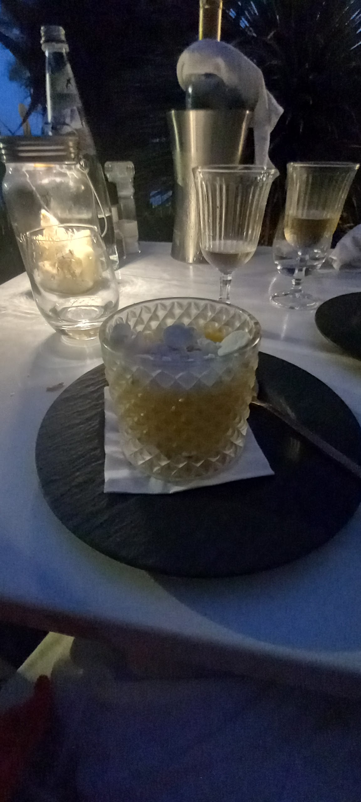 Bonjour, J'ai beaucoup apprécié le cadre magnifique dans le jardin au milieu des fleurs,la mer avec au loin les deux frères ! un repas délicieux mais avec un regret de trop peu pour le poisson et un temps d'attente après l'entrée trop long ! Quant au bar, un manque d'organisation, une attente interminable, un serveur qui disparaît... une noisette qui arrive sans lait, un cocktail détox qui ne correspondait pas du tout à ce que l'on nous avait annoncé, aucune excuse et pas d'autre cocktail en remplacement !!!!! là pour un 4 ou même 5 étoiles.... pas à la hauteur du tout !!! Dommage avec un cadre pareil .........