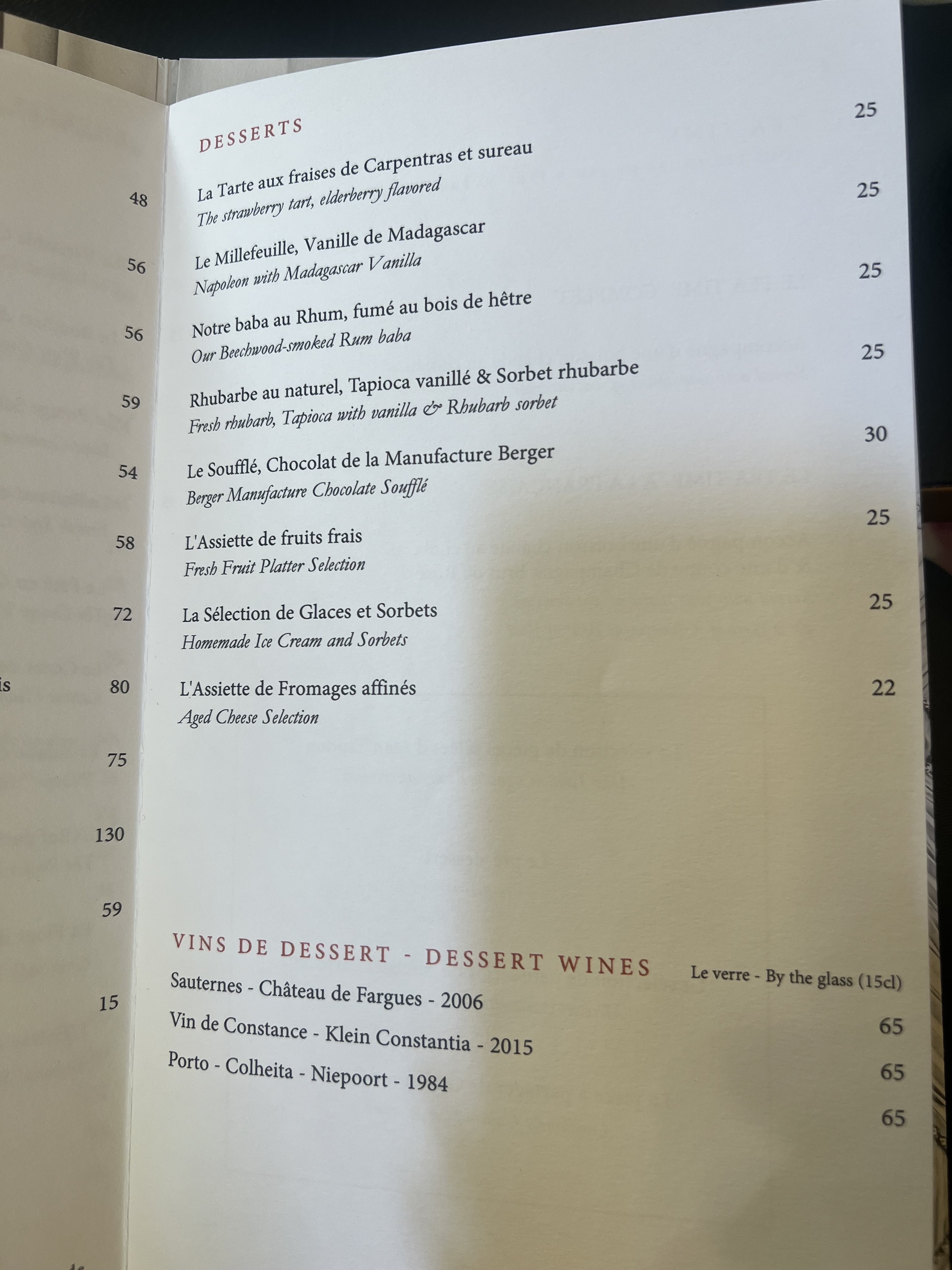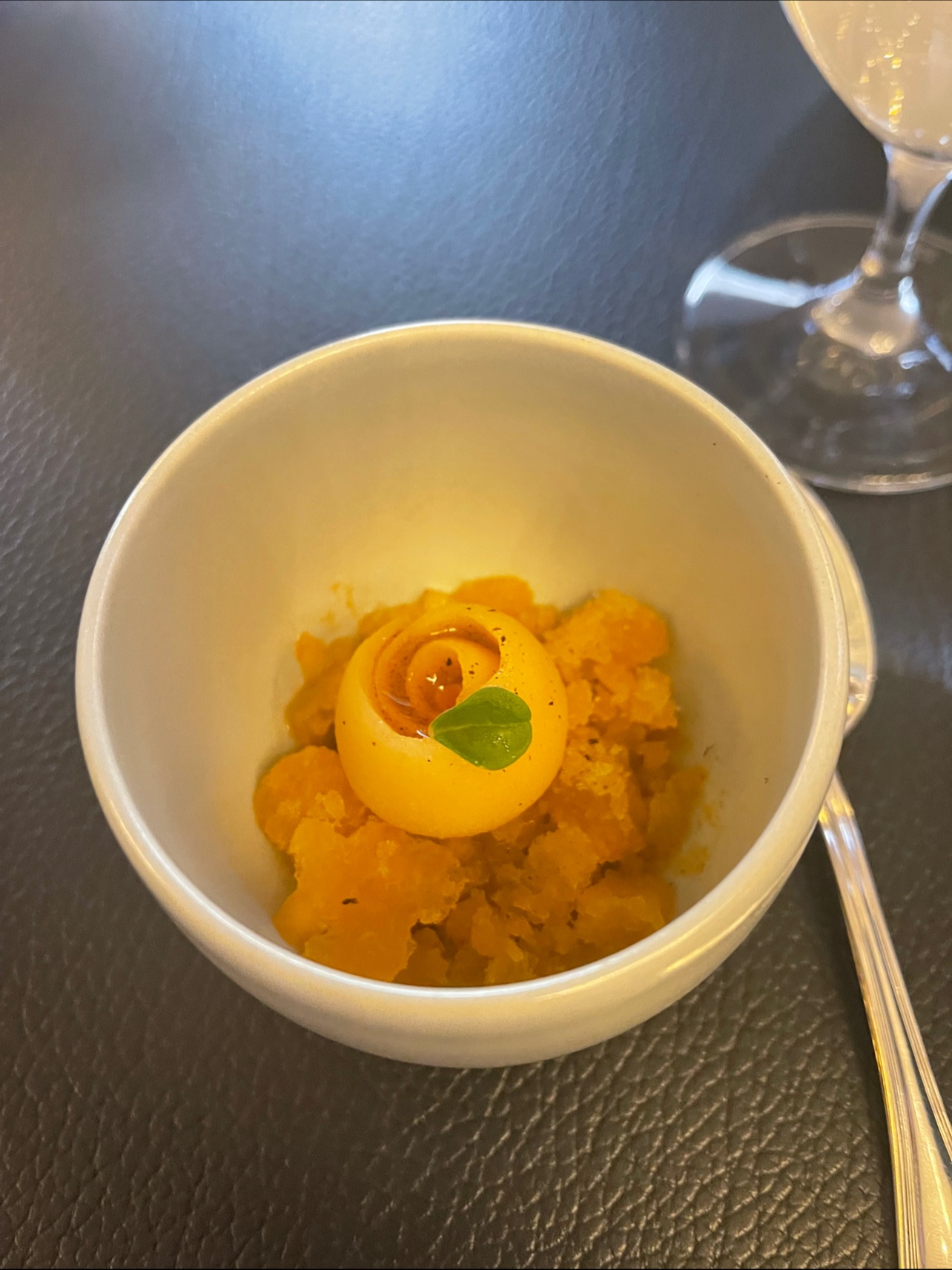 Excellent service comme toujours ! De l'hôte au service à notre table, ma femme et moi avons reçu un niveau de service incomparable à Paris. Attention aux détails. Les serveurs ont remarqué que ma femme n'avait pas d'entrée et lui ont demandé si elle aimerait avoir une cuillère pour essayer ma soupe et lui ont également proposé si elle voulait avoir son plat principal comme plus tôt. Un contact visuel a été accordé à nous deux tout au long et lors des adieux, ce qui nous a fait nous sentir spéciaux. La soupe à la butternut était très chaude et crémeuse. Ma femme a pris un risotto aux truffes et c'était parfait.