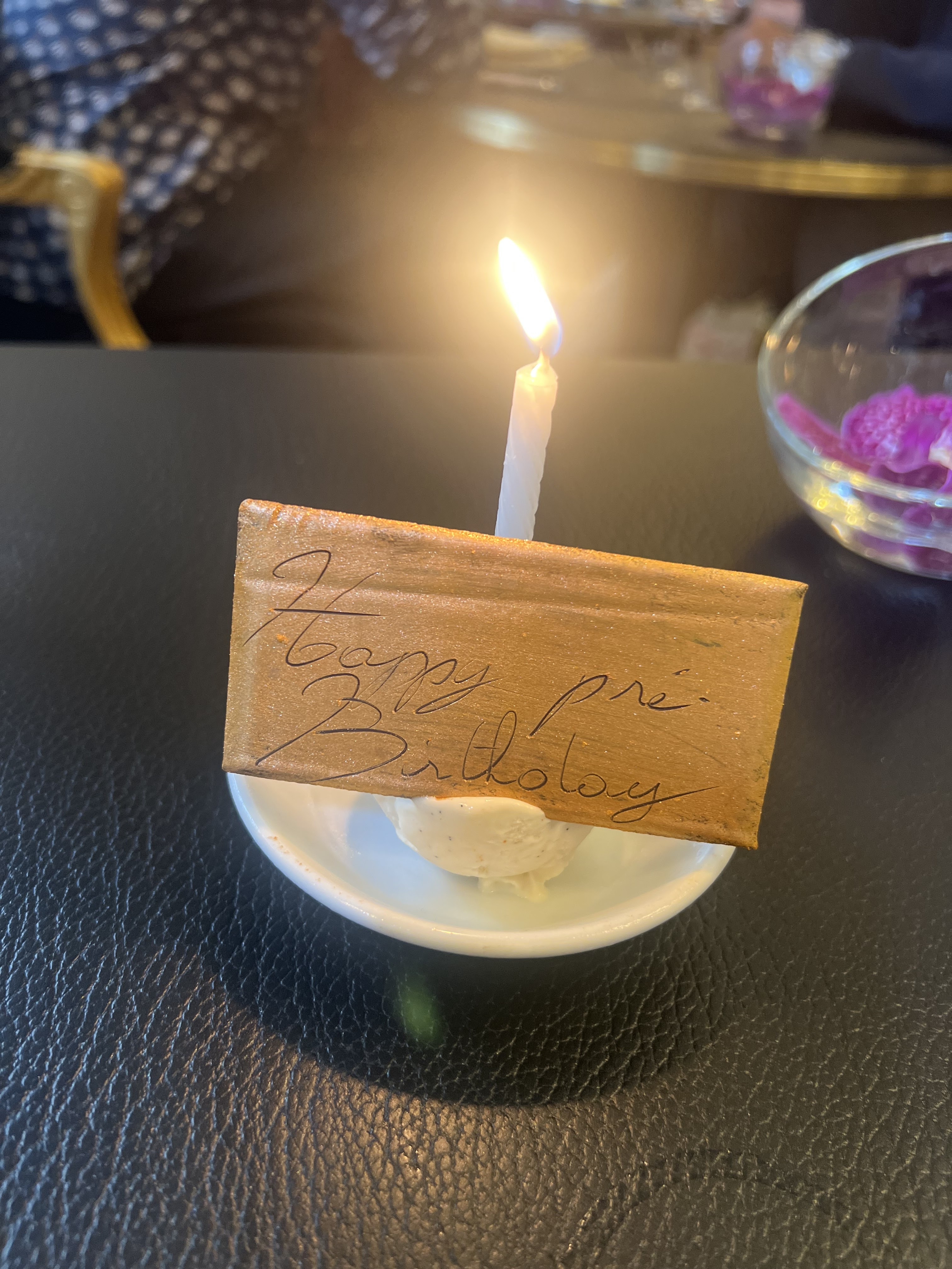 Le jour de mon anniversaire, je voulais le fêter à La Galerie du Four Seasons George V. C'était vraiment magnifique. Le service était vraiment gentil et attentionné. Les œufs et les pâtisseries du petit-déjeuner étaient délicieux. À la fin, j'ai reçu un pain perdu surprise pour mon anniversaire. C'était vraiment incroyable.