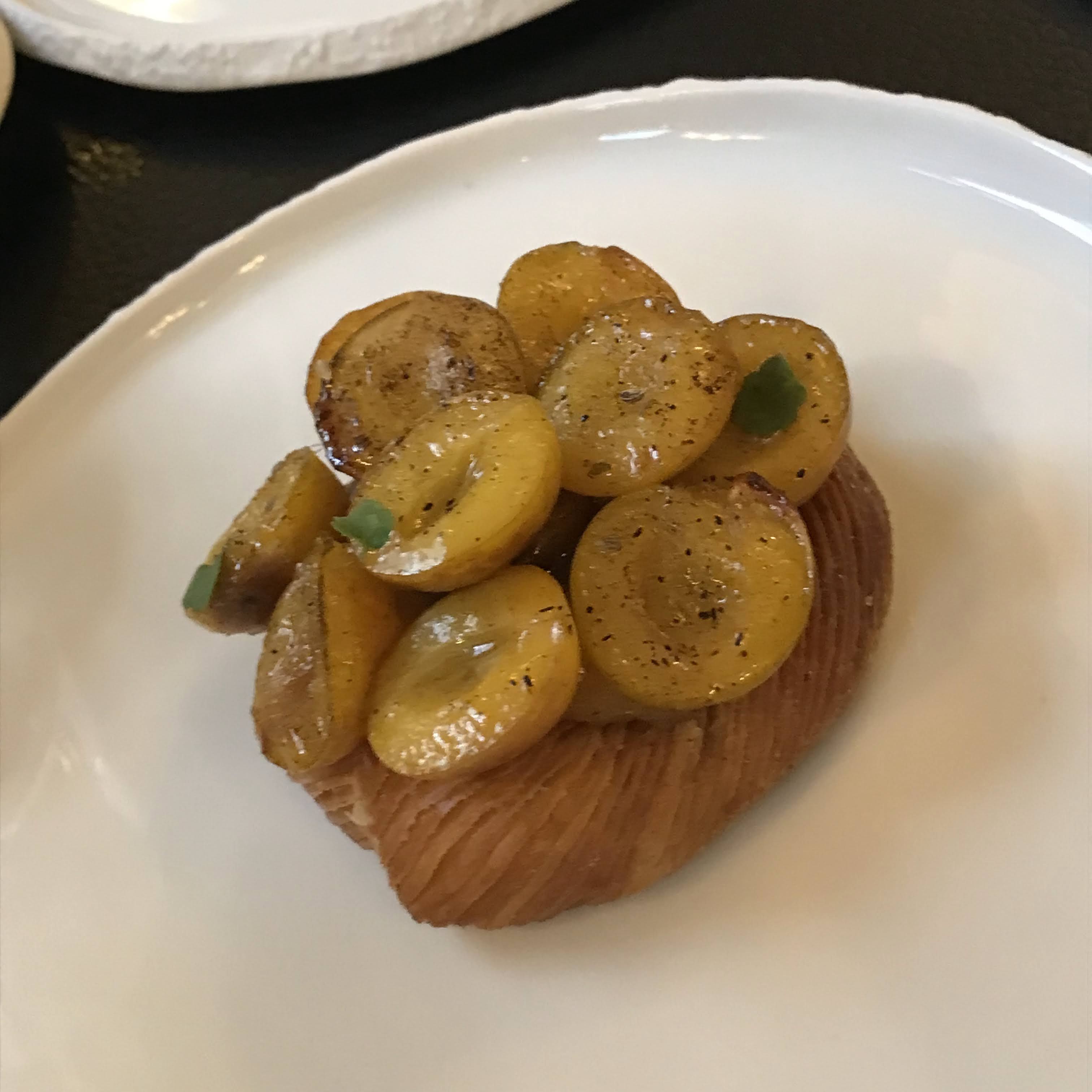 Tea-time au Four Seasons George V. Un excellent moment un peu hors du temps où s'allient plaisir des yeux et des papilles gustatives. Un menu par 3 Chefs étoilés, tout est parfait : 3 pièces salées, un pré dessert, 3 pâtisseries et une fougasse sucrée. Délicatesse des produits et des saveurs, pas trop sucré comme souvent...Le tout accompagné de champagne rosé puis de thé grand cru... et également un piano d'ambiance.