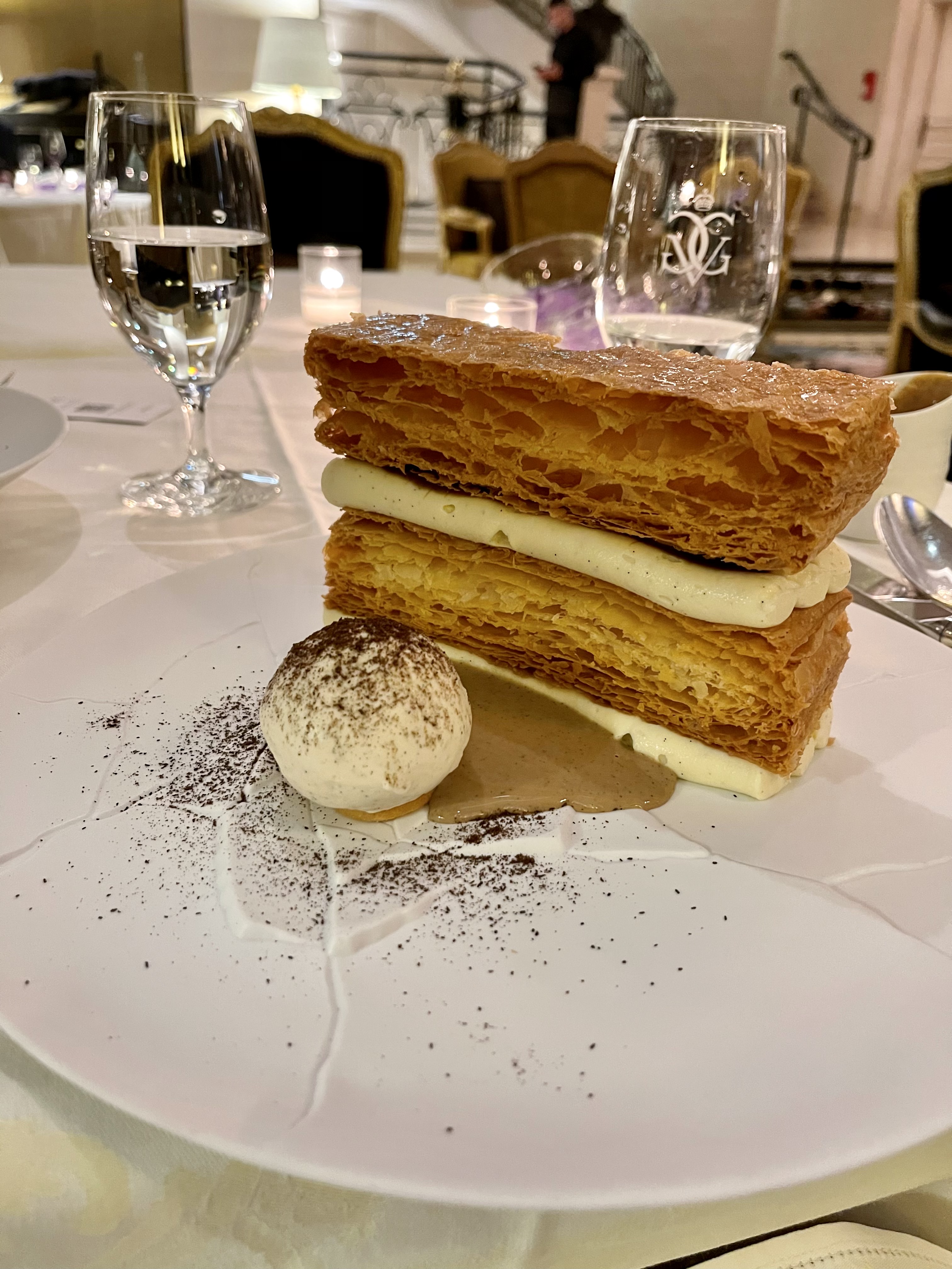 Service exceptionnel assuré par Ugo à la Galerie pour un service de desserts de fin de soirée. Essayez le millefeuille et le Paris-Brest.