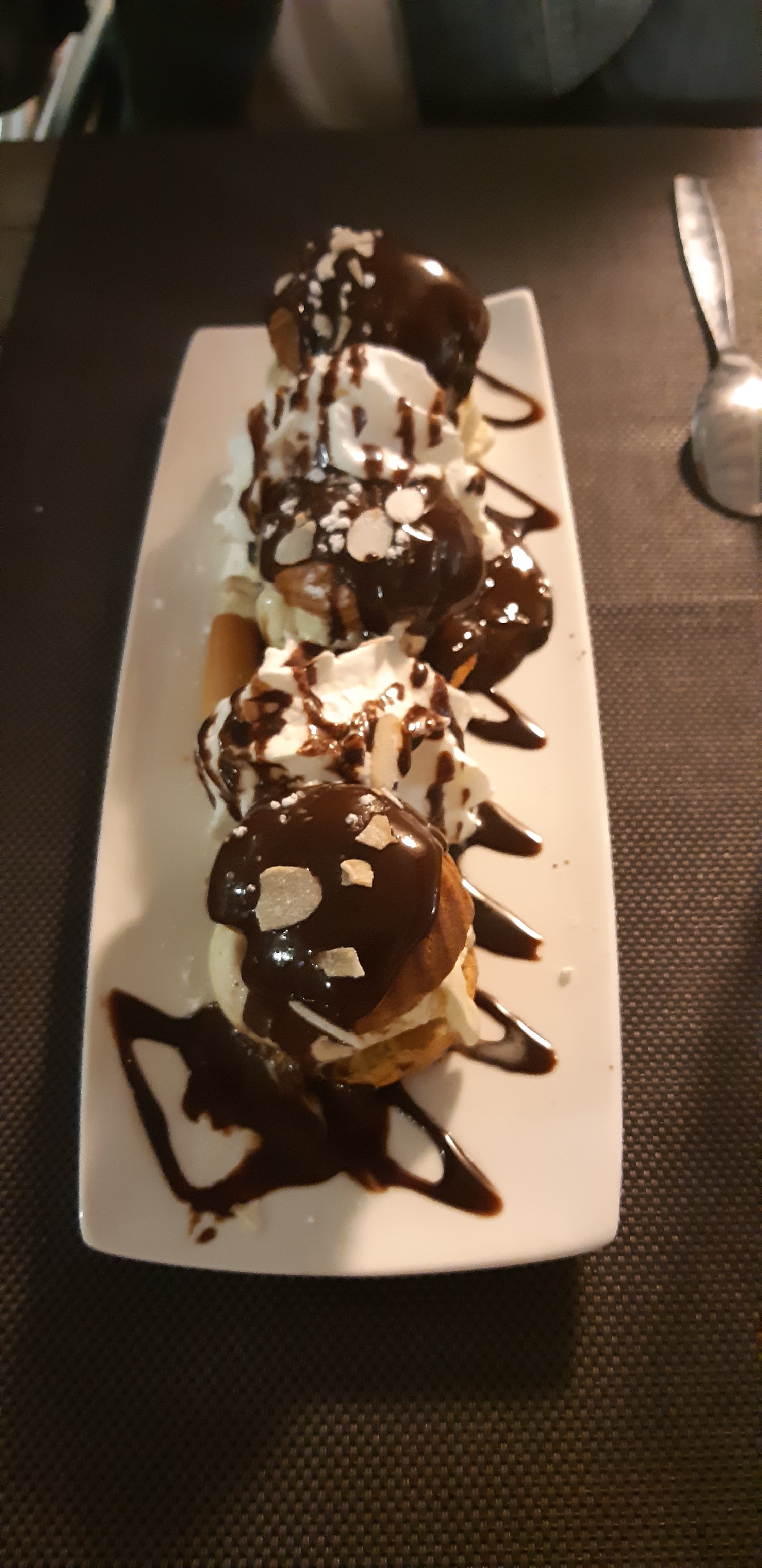 Frites froides, crème brûlée industrielle, profiteroles pas top.