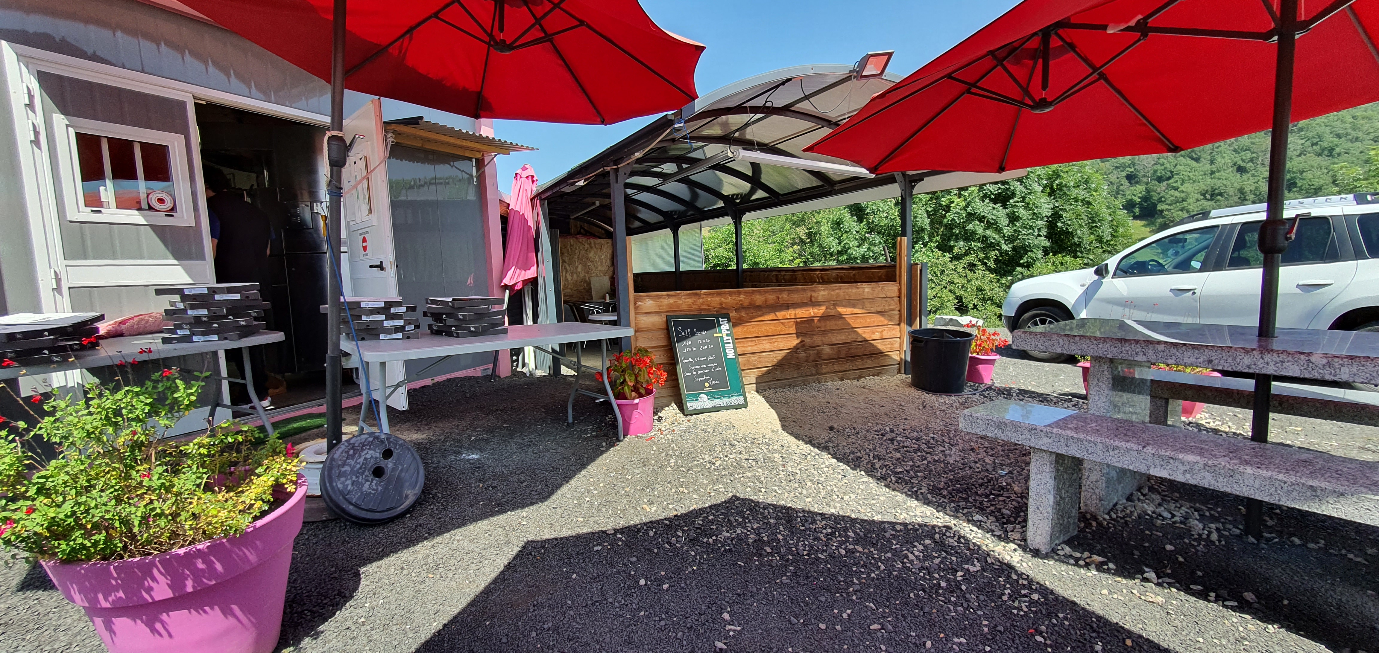 L'endroit est très agréable, bien situé sur la route des vacances entre Corrèze et Cantal... ( ou tout simplement celle des Bortois et des Cantaliens) ... c'est un des lieux de vente à emporter le plus beau que je connaisse. Rémy le patron nous offre un choix de 33 pizzas toutes plus copieuses les unes que les autres, des burgers gastronomiques (au ris de veau par exemple) des desserts ... enfin tout ce qui peut combler un gourmand! Un lieu que je recommande particulièrement après une visite du barrage de Bort, du château de Val et un départ vers Salers par exemple ...
