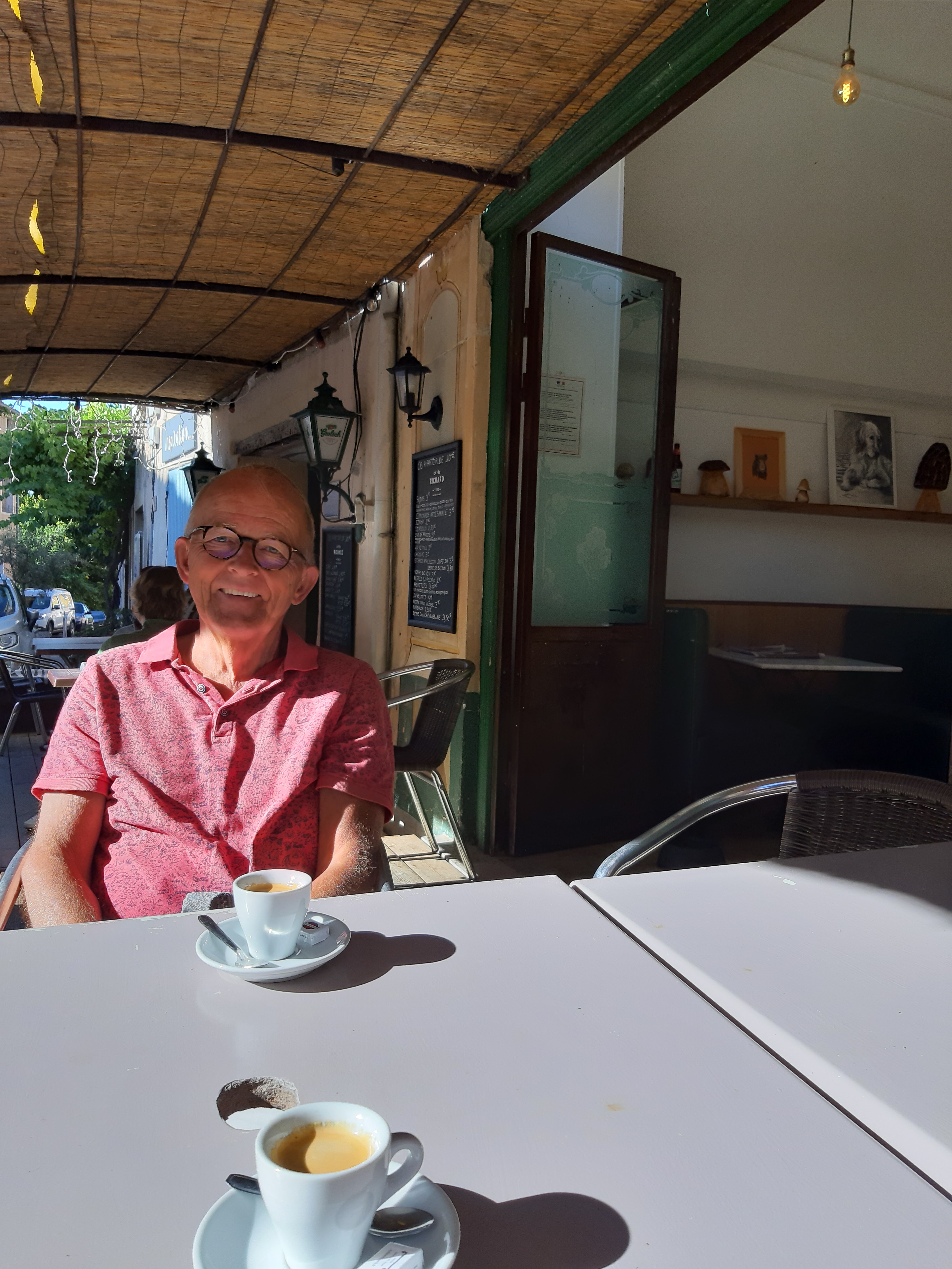 Un petit café à l'ombre. ambiance locale . On vous saute pas vraiment au coup quand vous arrivez.