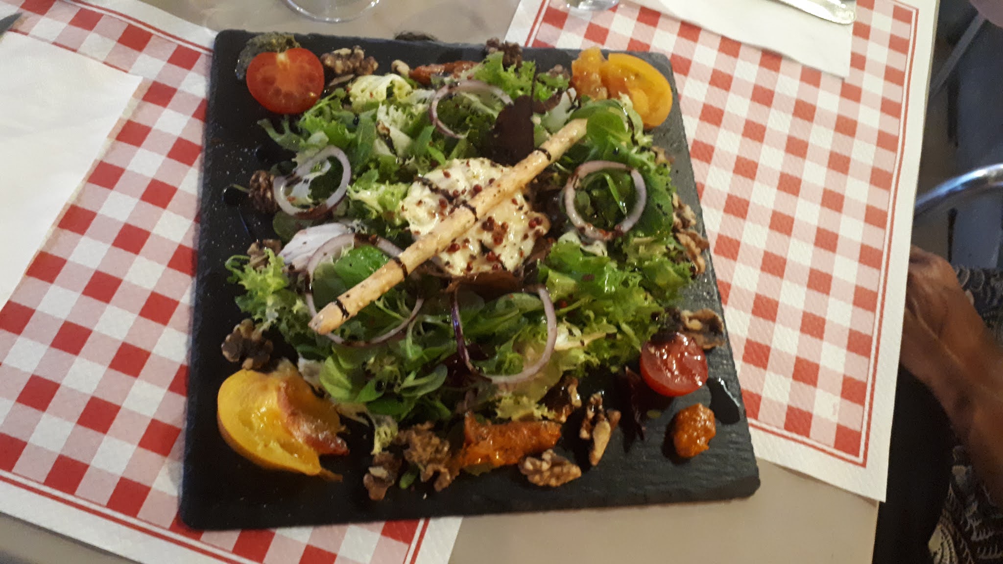 Restaurant visité ce jour. Ma sœur a pris un camembert rôti avec jambon salade frites. Elle est cœliaque et ne peut absolument pas manger de gluten. Bien que le plat ne mentionne aucun gluten nous l’avons précisé et avons insisté pour qu’il n’y ait rien d’ajouté. Ils ont servi le plat avec un gressin posé sur l’assiette. Malgré un aller retour en cuisine pour changer l’assiette à notre demande (ou juste retirer le gressin on ne saura pas), et un petit geste du chef sur l’addition, nous regrettons amèrement notre choix de restaurant. Allergie prise par dessus la jambe et serveuses nonchalantes. Pas de papier toilettes aux WC à 19h30 et propreté très moyenne. A fuir, il y a beaucoup mieux au village