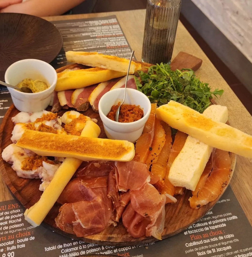 Très bons plats on s'est régalé à ce niveau là, le cuisiner assaisonne bien ce qu'il fait. Surtout les moules gratinées, le tataki de thon et les pâtes au gorgonzola ! Cependant on nous a pas servi de carafe d'eau (ce qui devrait être un réflexe vu la chaleur !) et malgré le vin commandé on nous a pas servi de verre à vin... Les assiettes des desserts étaient ébréchées.