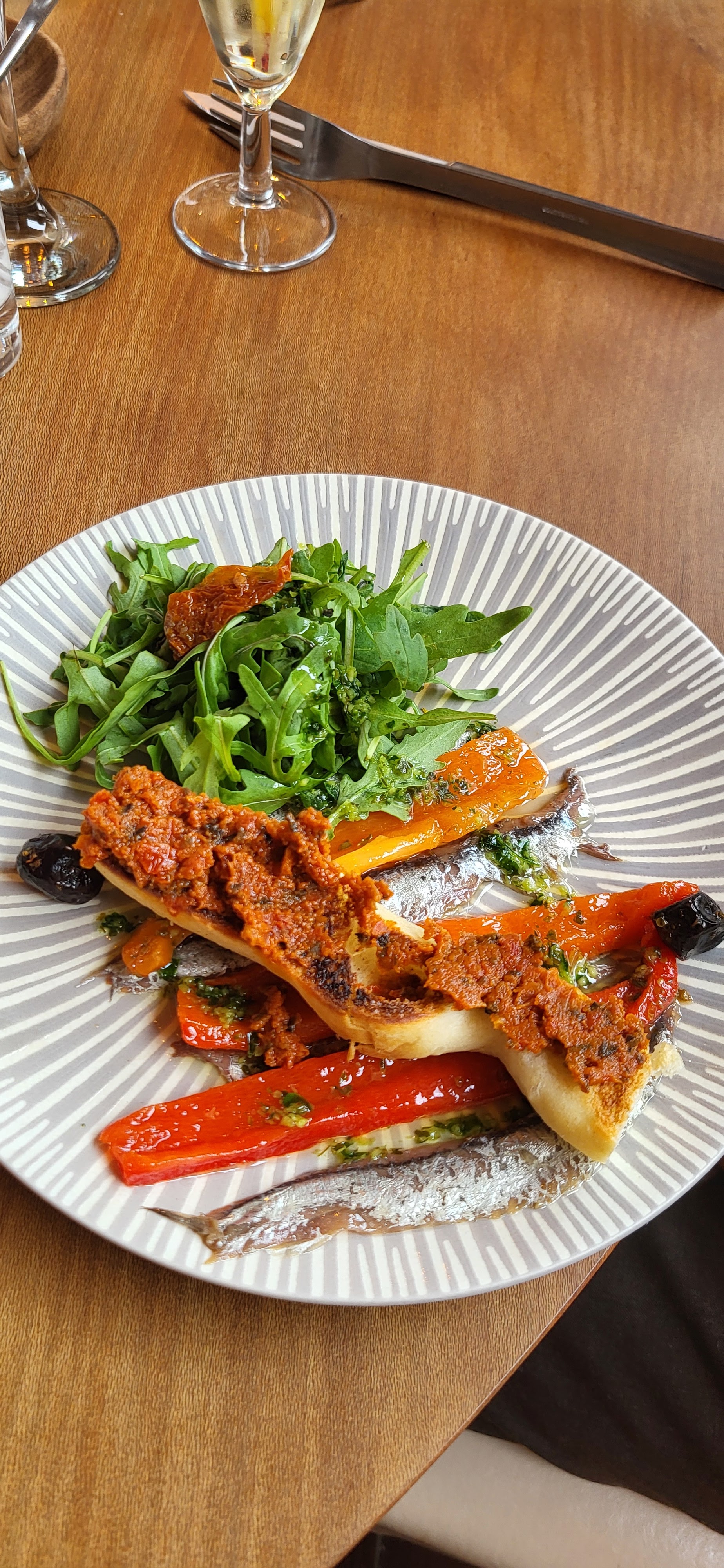 Pour l'entré rien a dire très bonne préparation bonne cuisson et assortiment très bien présentation. Pour le repas très bonne présentation. Du bon goût pour les légumes. Pour le poisson pas bien cuit. Et la souce ou dessus du pavé très salé du coup impossible de manger le poisson 🐟. Pour le reste tout va bien. Bonne appétit.