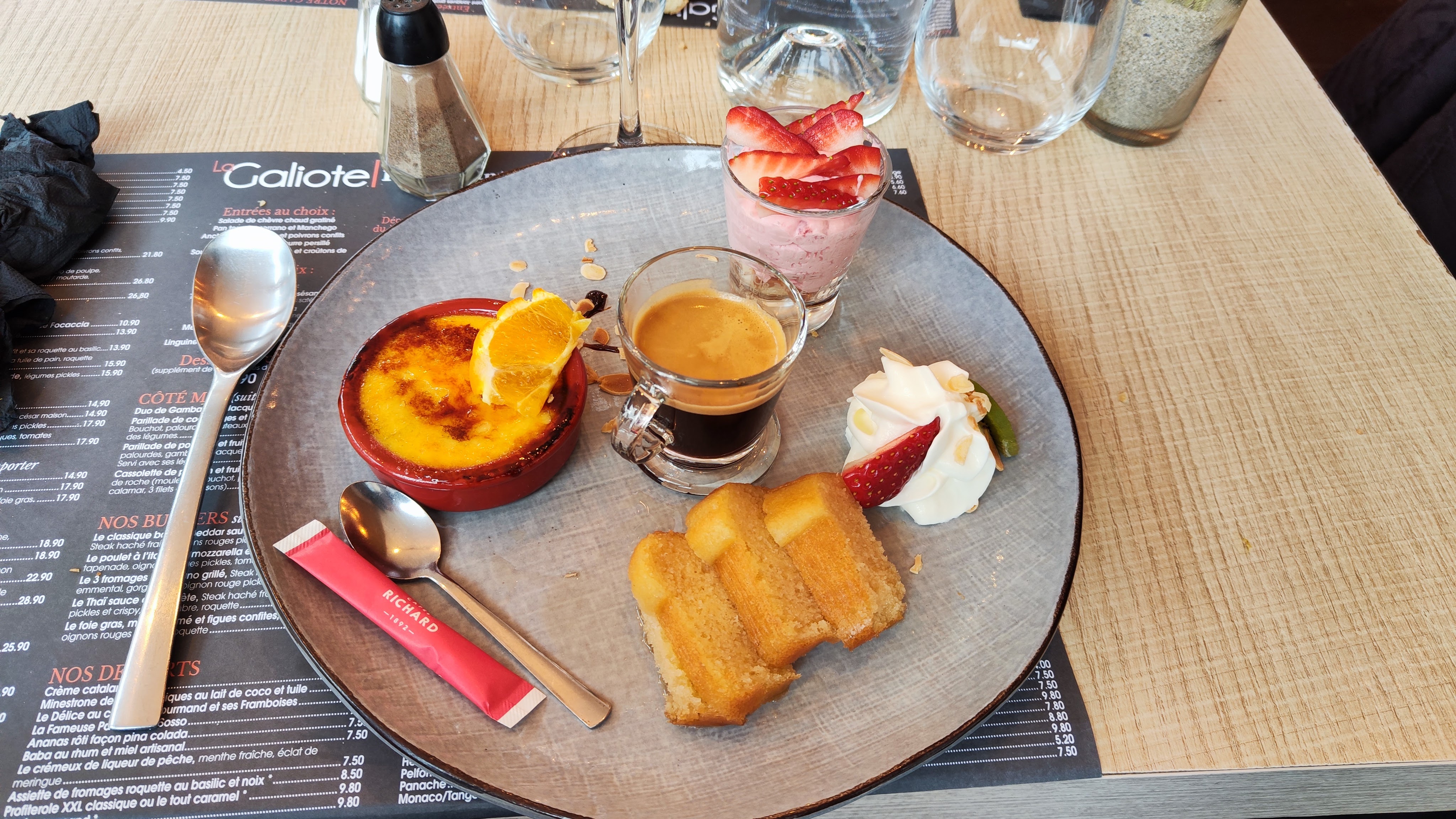 Une fois de plus, un vrai délice ! Le menu est très soigné et le rapport qualité-prix est imbattable. On reviendra très vite pour goûter d’autres plats. Par contre, on ne choisira plus l’hamburger, pourtant délicieux car un hamburger sans frites, c’est un peu dommage. Merci à toute l’équipe de la Galiote et à bientôt !