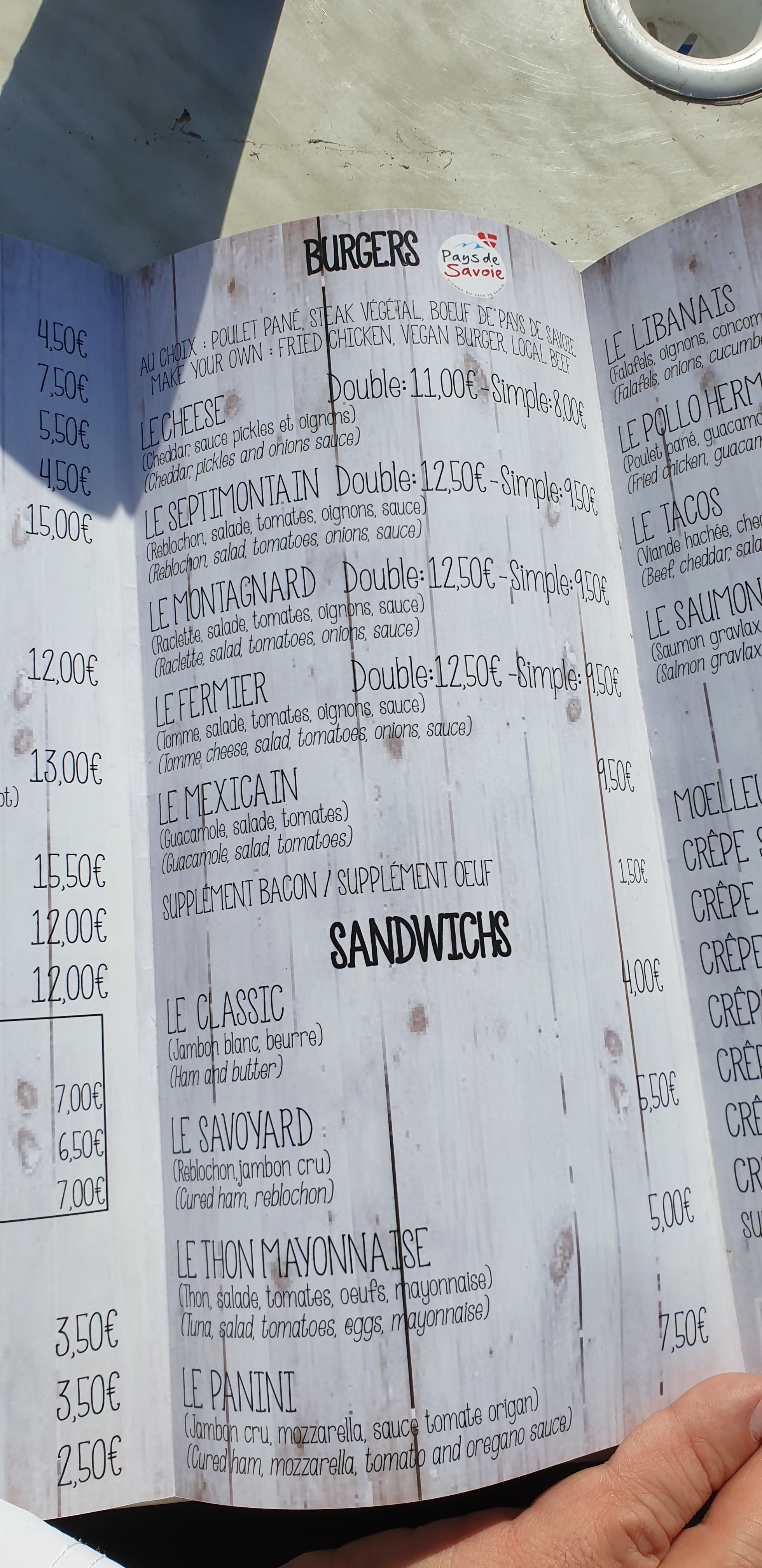Nous avons tres bien mangé . Hamburger très bon 8.50euros et frites délicieuses en grosse portion pour 4euros . Bon rapport qualité prix surtout pour un restau/snack au niveau des pistes
