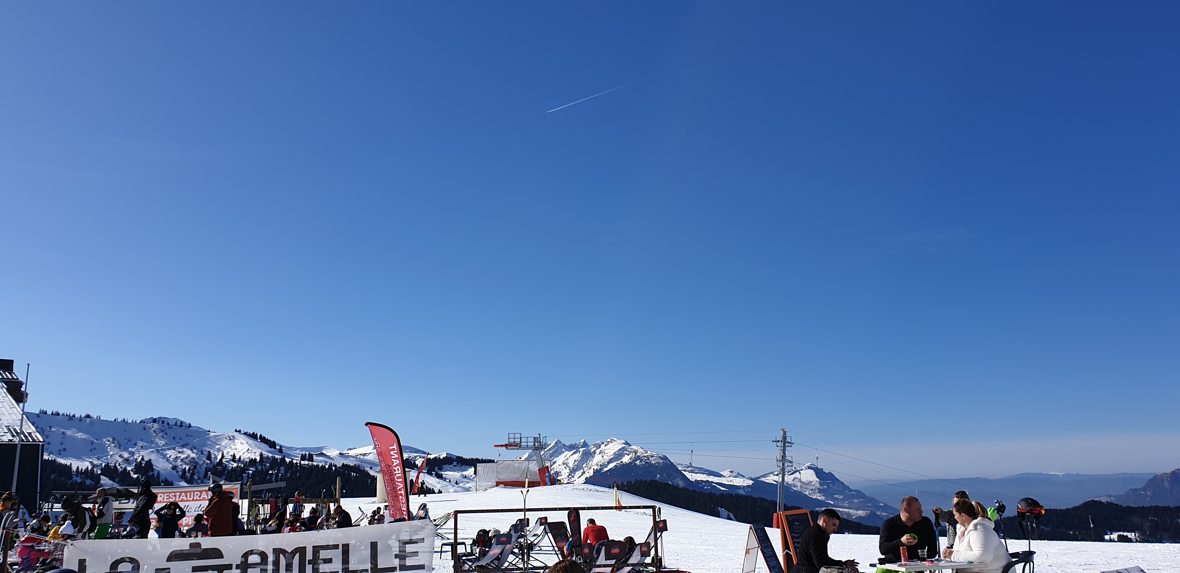 J'ai trouvé ce joyau lors de notre troisième jour de ski ! Cet endroit est le meilleur endroit pour manger lorsque vous êtes sur les pistes de Samoëns. Pour adultes et enfants ! Bonne nourriture, personnel sympathique et ambiance agréable. Coin salon confortable au soleil et vous n'êtes pas entassé comme des sardines - contrairement à d'autres endroits sur la colline. Oui, il y a beaucoup de monde à l'heure du déjeuner, mais comme vous pouvez passer là-bas en ski, nous avons juste gardé un œil dessus et essayé de manger avant ou après les messes. Dans l'après-midi, ils préparent d'excellentes crêpes sur une table extérieure. Bravo de la part de notre famille de quatre personnes.