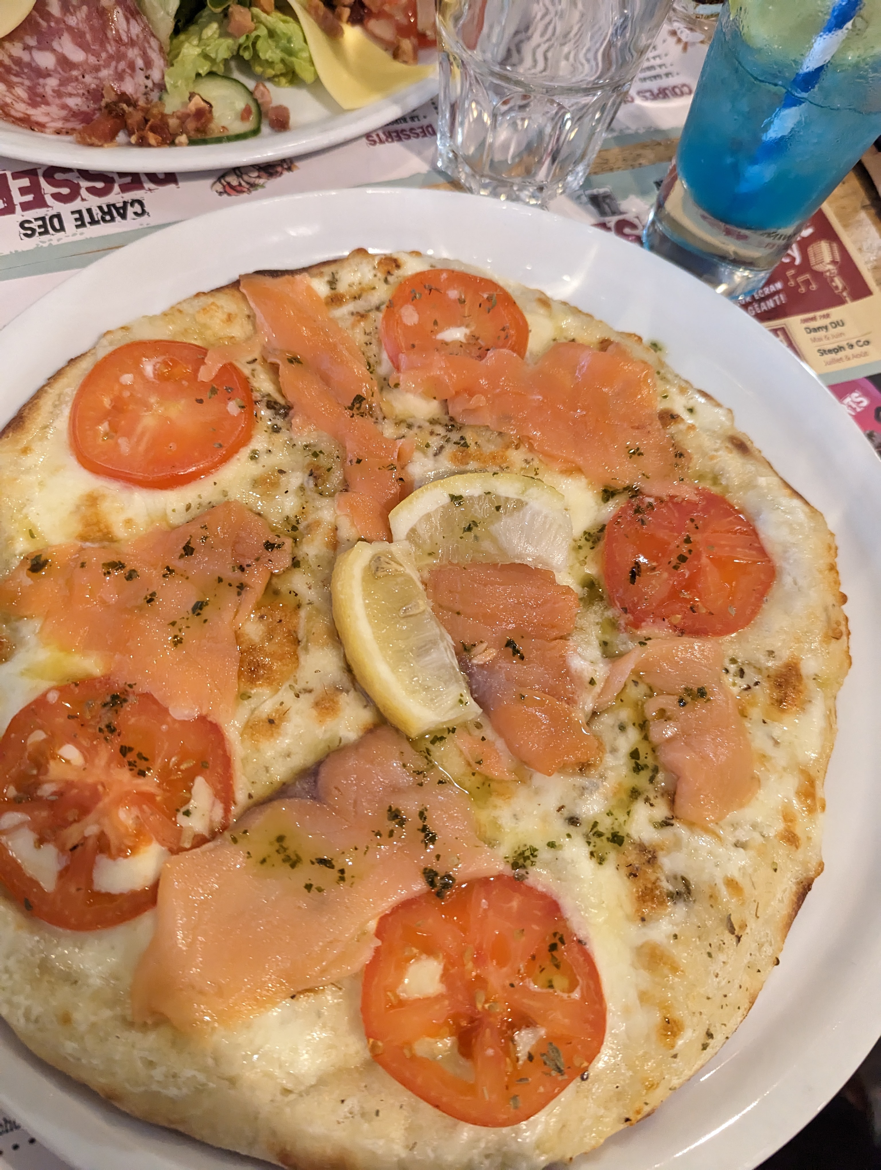 Un super accueil au niveau des serveurs et serveuses au top souriants nous avons décider mon amie et moi de partager une pizza il nous a été proposer à chacune une demie pizza salade qui nous a été facturer le prix d'une pizza entiere ma chère salade... Dommage car l'ambiance est top et la pizza ainsi que la glace était très bonne mais 13e90 une demie pizza ainsi qu'un peu de salade avec deux morceaux de chèvre bas non dsl ça ne passe pas...