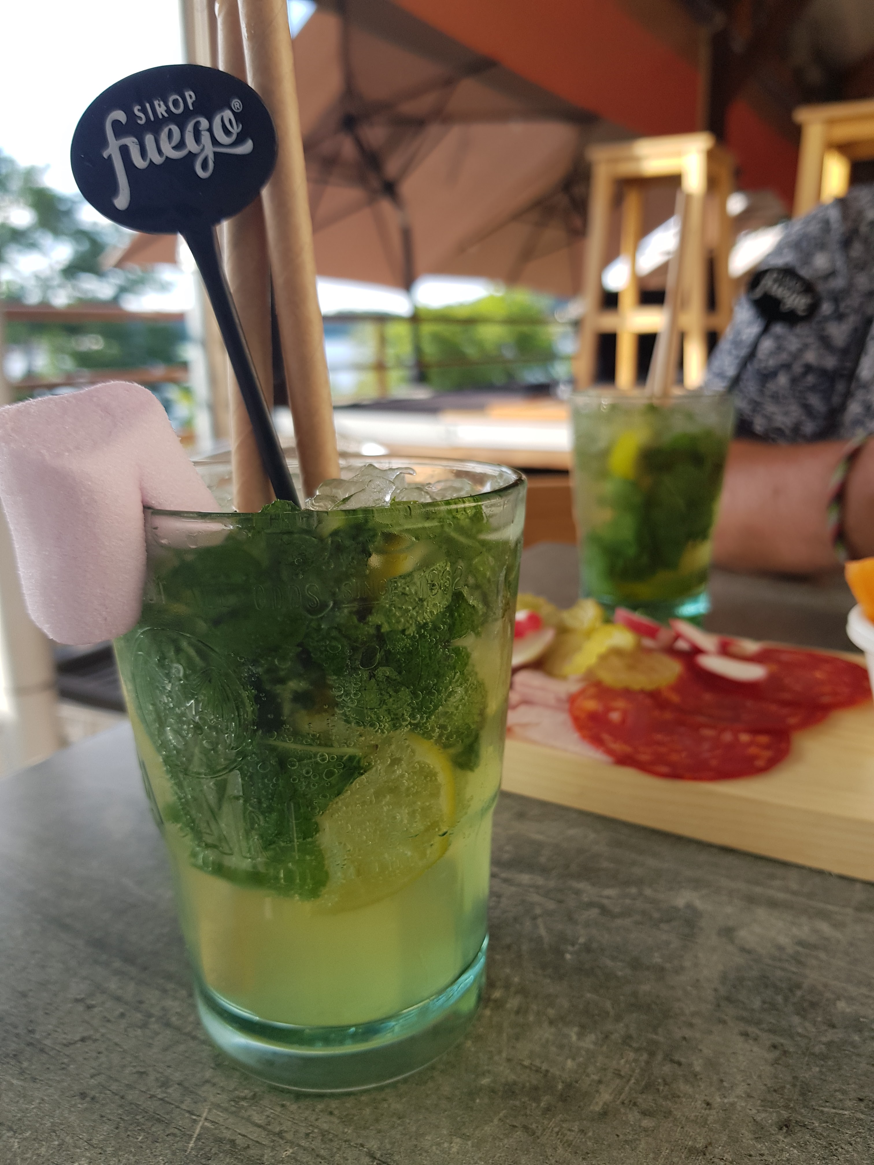 Très bon mojito royal. Planchette apéro un peu chère. Personnel sympa.
