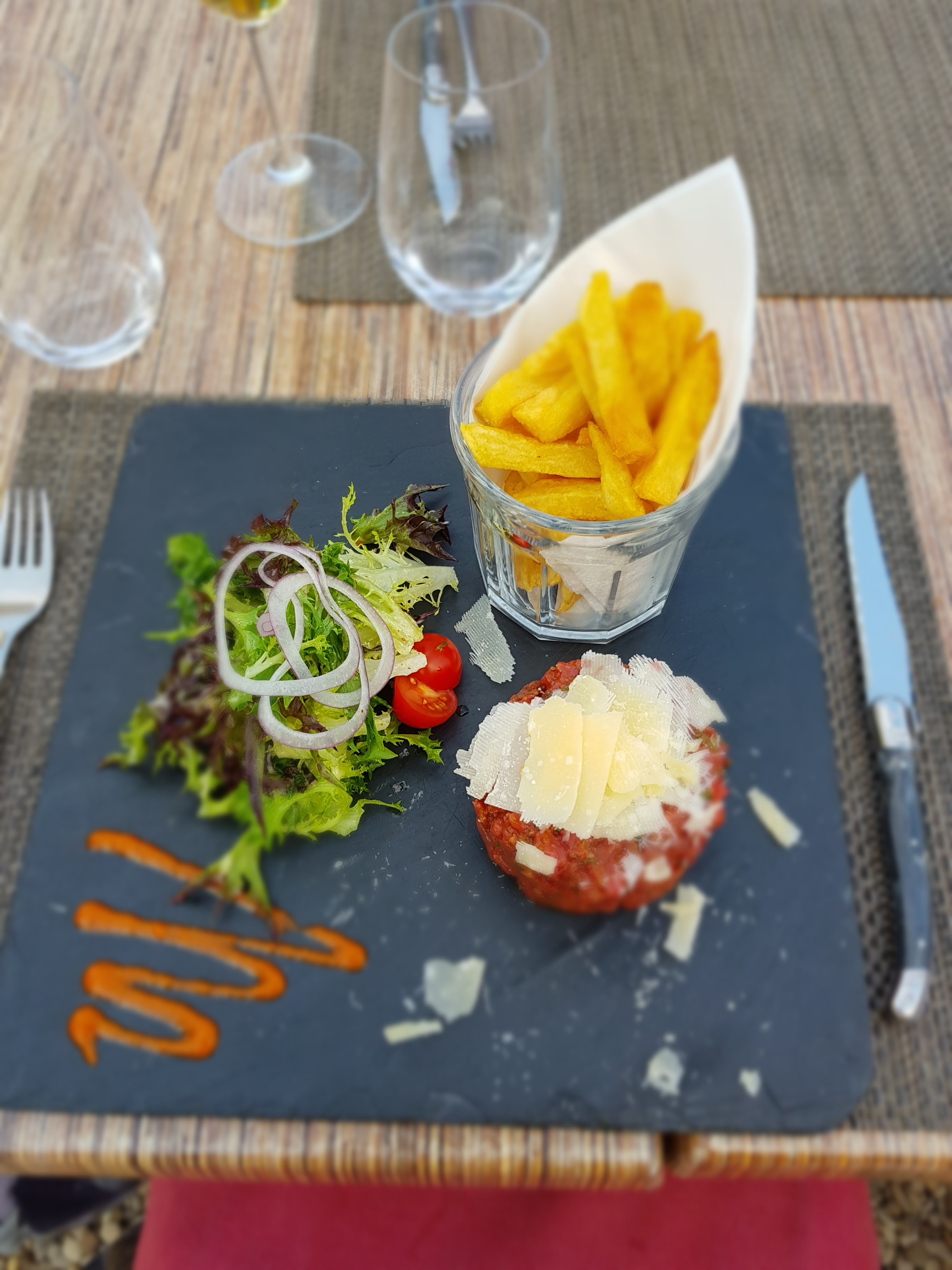 Une très bonne côte de bœuf des frites exceptionnelles , bref un super moment simple sans chichis mais au top