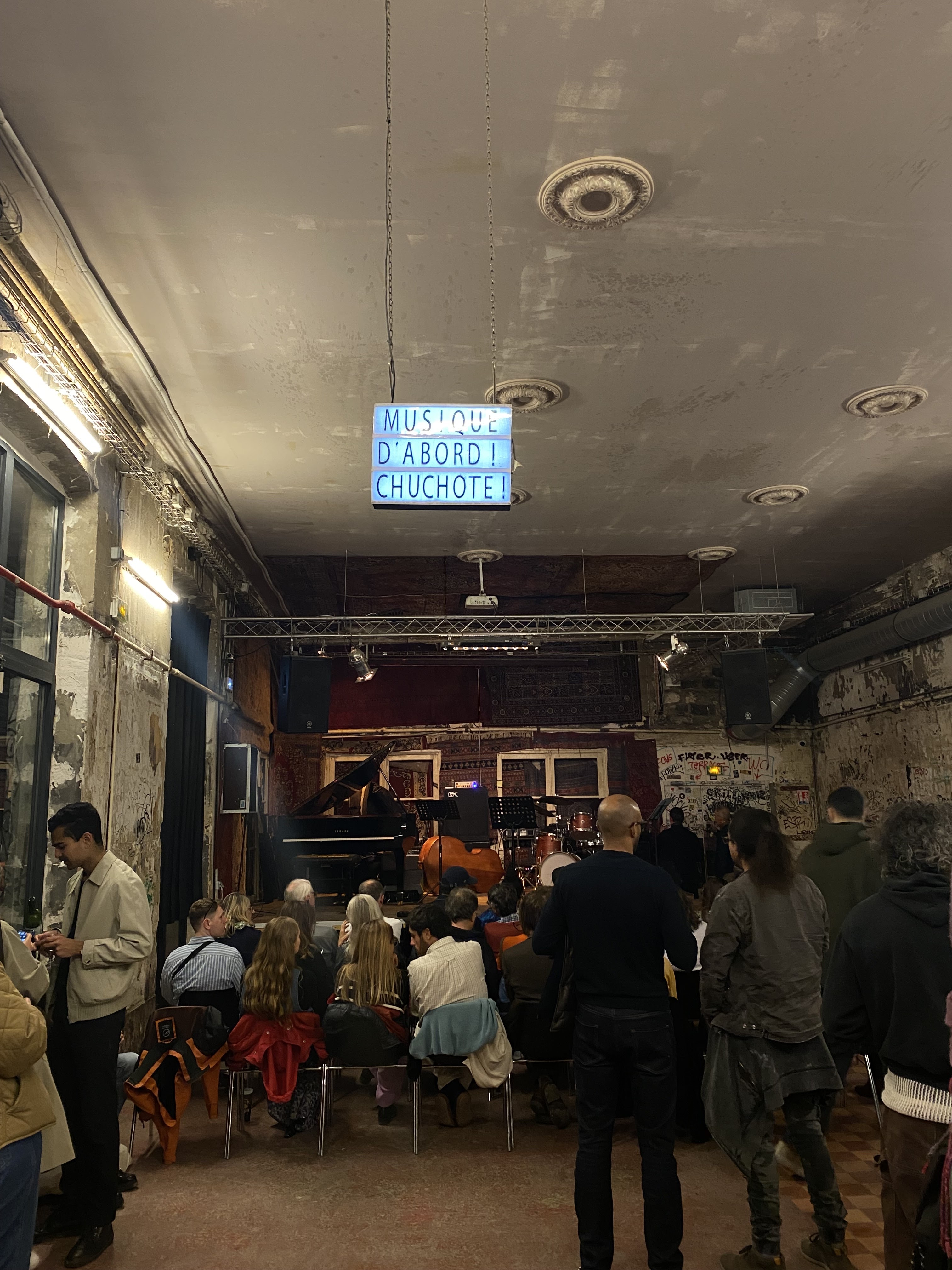 Lieu sympa, jazz non conventionnel c'est cool. Par contre il faut vraiment savoir que c'est avant tout un concert et non un bar. J'avoue que c'est le côté que j'aime moins, on a pas le droit de parler à l'intérieur au risque de se prendre un chut du barman, il y a des panneaux chut partout. Pas dérangeant en soi, il faut le savoir quoi ! Mais perso j'ai un peu de mal