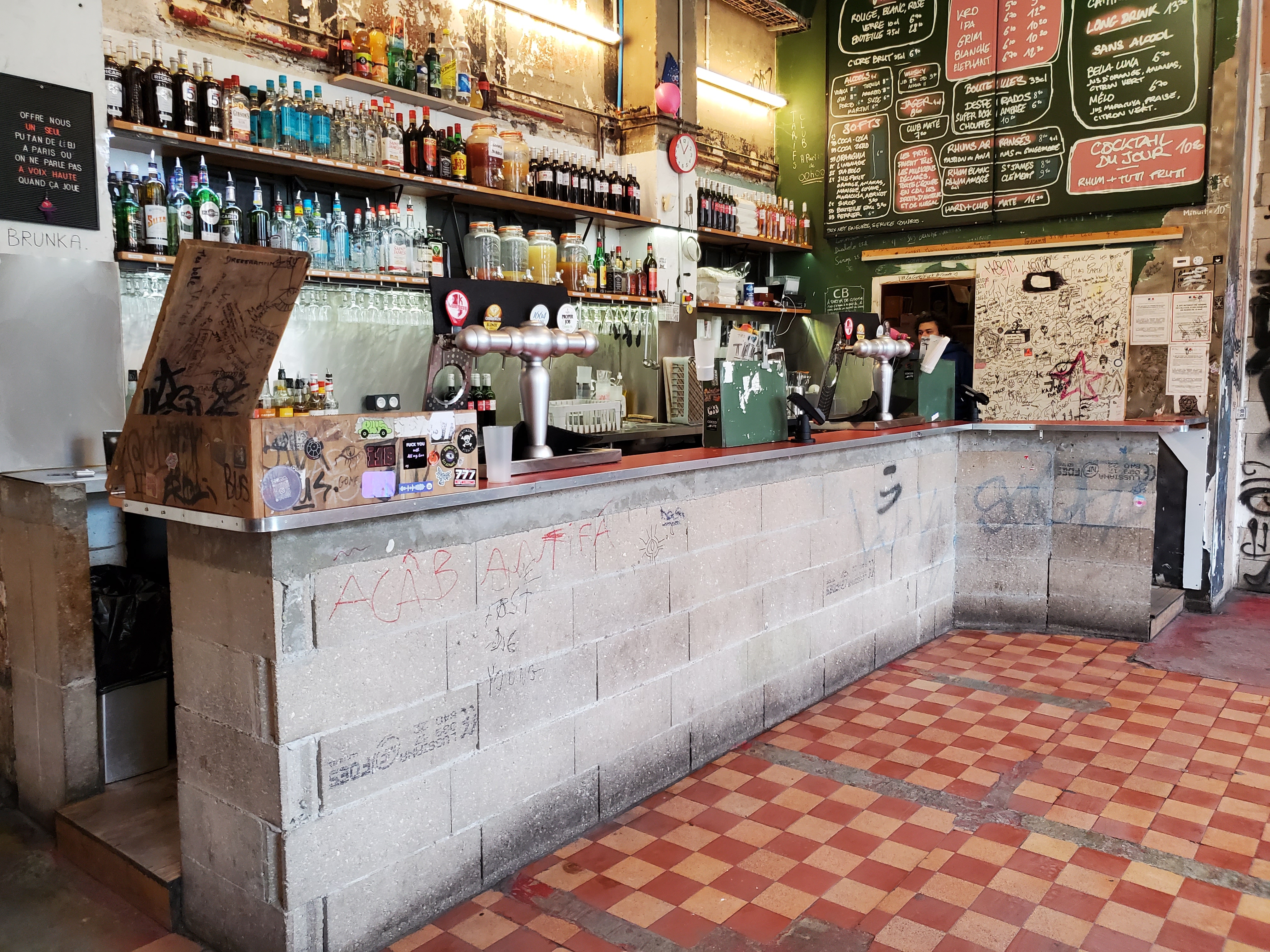 Après avoir dû faire le tour alors que nous étions auparavant Au Fil du rail (impossible de passer par les rails à partir d’une certaine heure), nous nous sommes retrouvés face aux videurs qui nous ont un peu gratuitement pris en grippe. Nous avons voulu rentrer déposer nos vélos dans la cours intérieure où il y avait 5 places disponibles mais les videurs, pour une raison que nous ignorons, n’ont pas voulu nous laisser passer, nous demandant de laisser nos vélos à l’extérieur (ce qui, pour quiconque connaît un peu le coin, revenait à nous les faire voler dans la demi-heure). Les deux videurs se sont arc-boutés de façon dédaigneuses sans que l’on comprenne réellement pourquoi. C’est vraiment dommage car le lieu est très sympa, et c’était la première fois que nous rencontrions un problème de ce type dans le 19ème et alors même que nous étions des habitués du lieu. Surprenant.