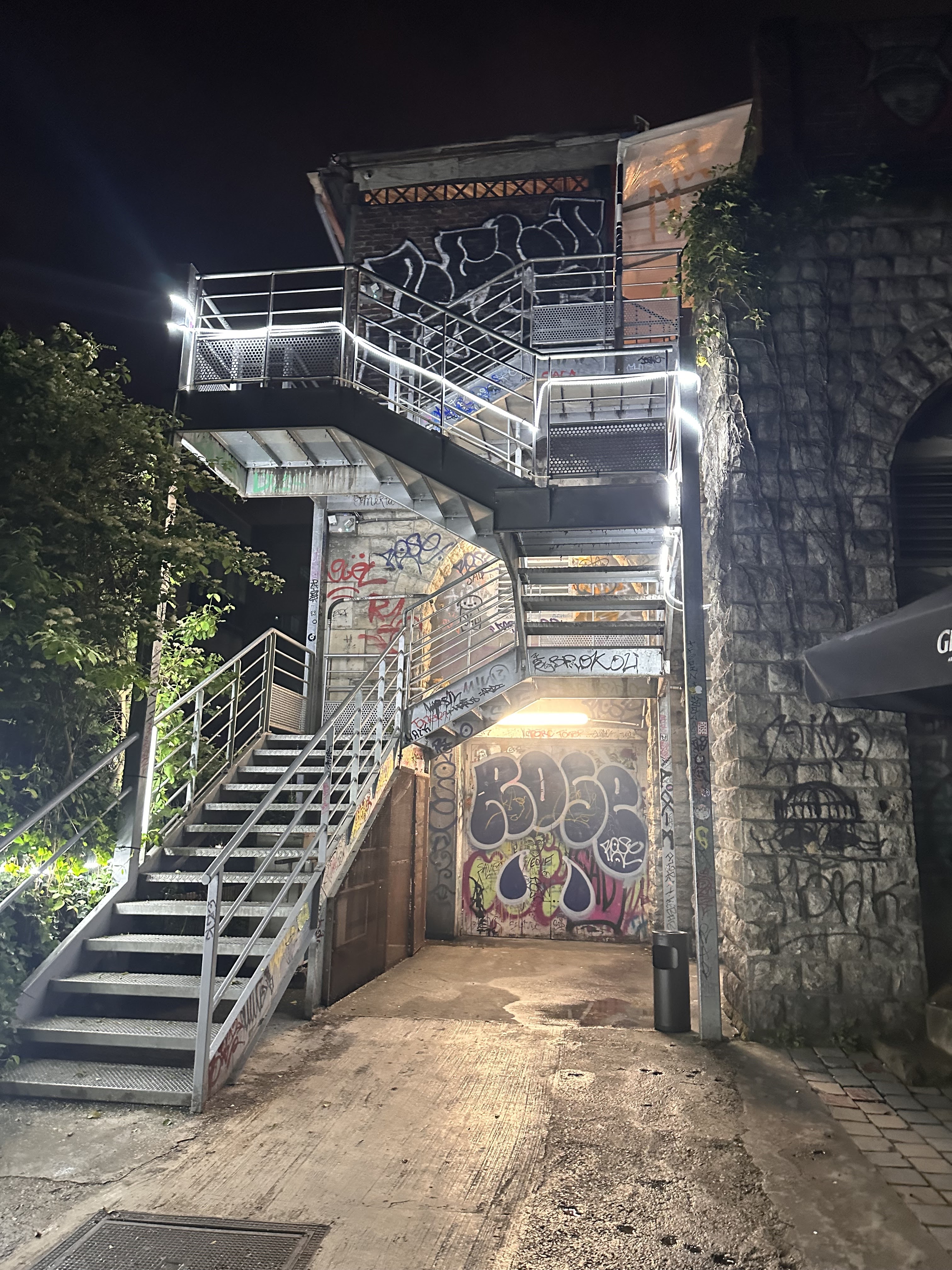 Lieu underground avec plein de tags partout. Bonne musique. Bonne ambiance. J’y suis allé un jeudi soir donc ce n’était pas bondé. Tout était bien sauf le serveur pas très aimable.