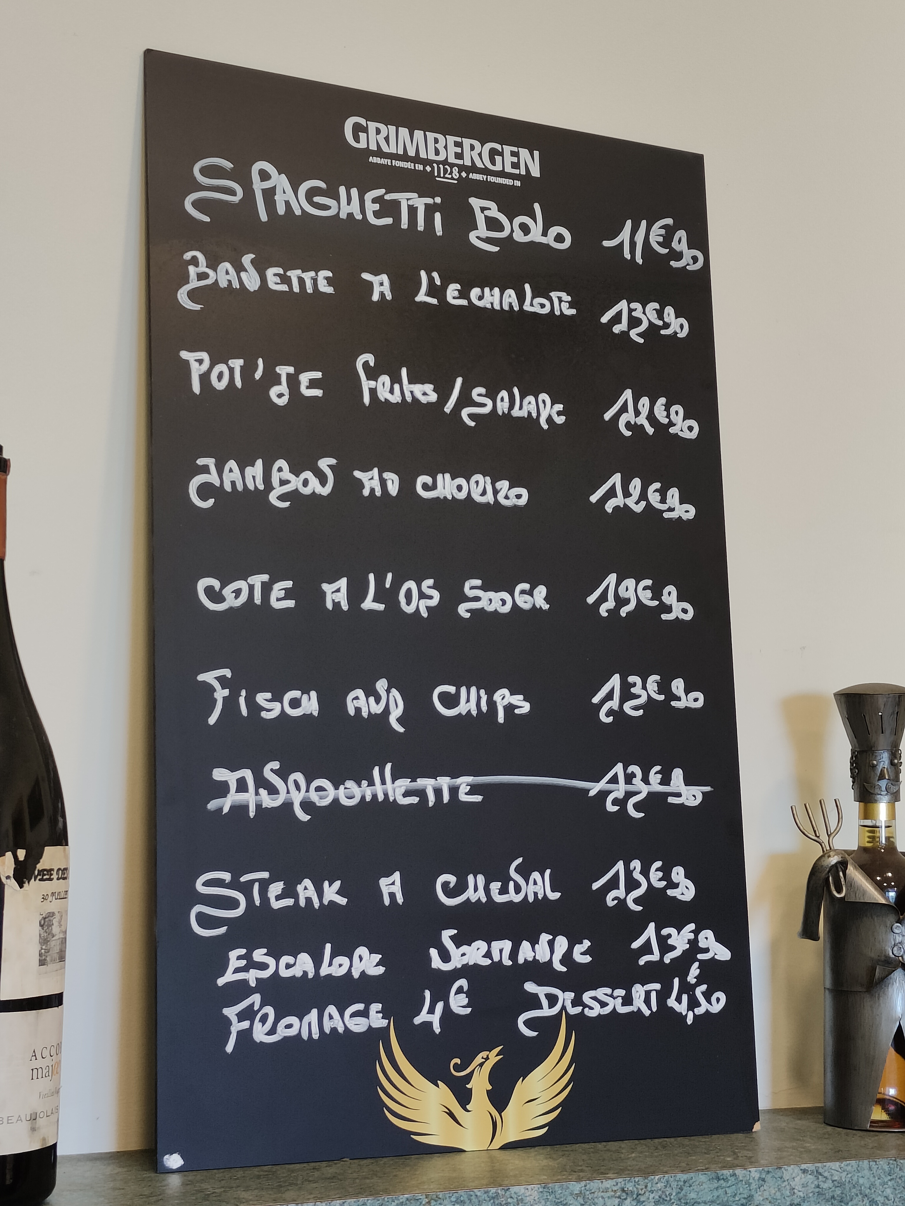Les entrées moyen Bon plat de résistance Fromage dessert 2 euros 50 le car de vin rouge supplémentaire