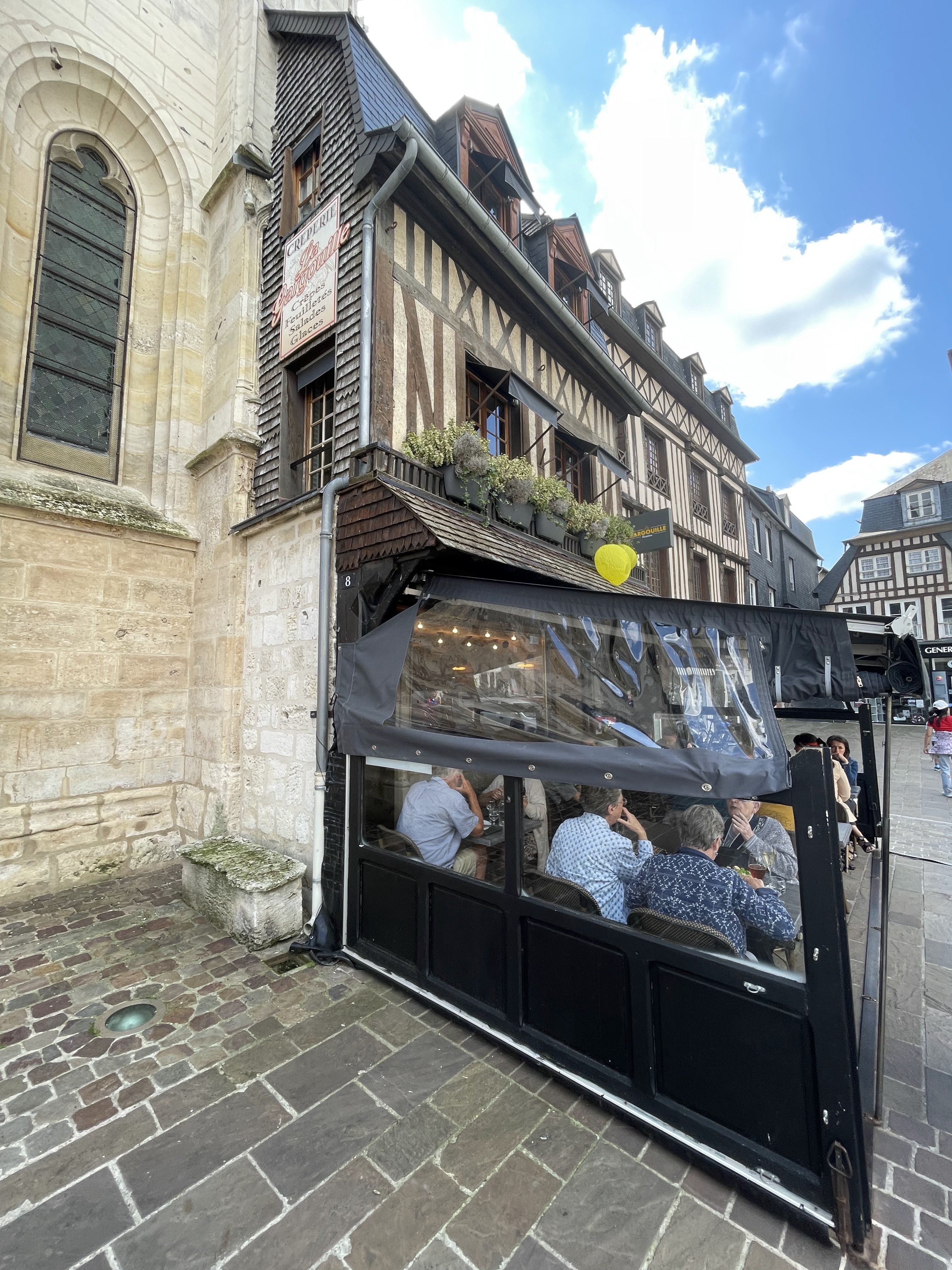 Restaurant avec une architecture intérieure atypique, puisque adossé à l'église de Pont Audemer d'où on voit les mur de celle ci a l'intérieur, avec un accueil agréable, et un service impeccable ... La carte est complète, avec pour les produits testés, une très bonne qualité ... Tout a été parfait ... Je recommande !