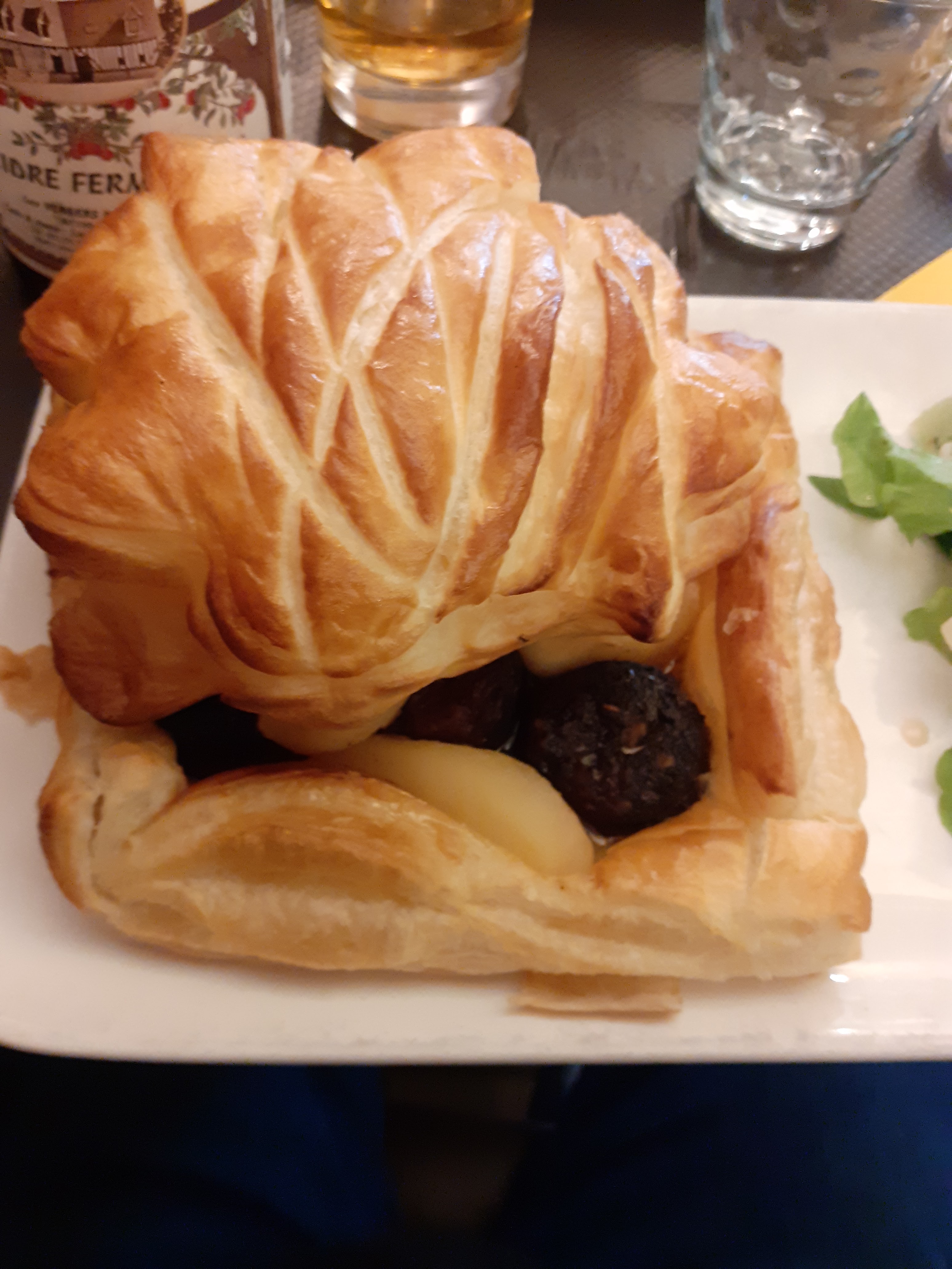Je me suis régalée! avec une excellente pâte feuilletée garnie de camembert et andouillette , la prochaine fois ce sera avec des crêpes 🥞