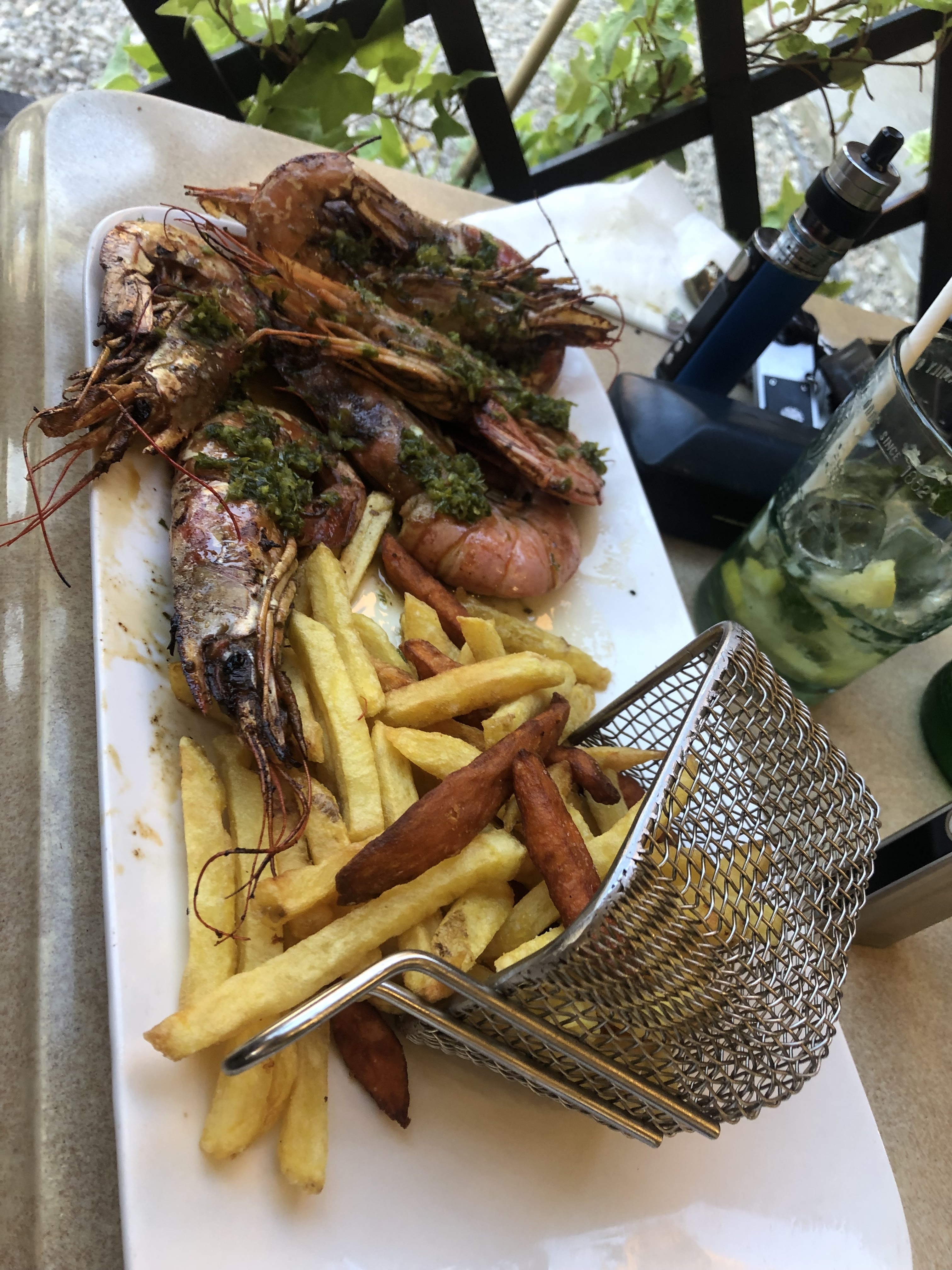Très bon . Cadre agréable en plein air. Un dessert hummmmm des profiteroles délicieuses et énormes .
