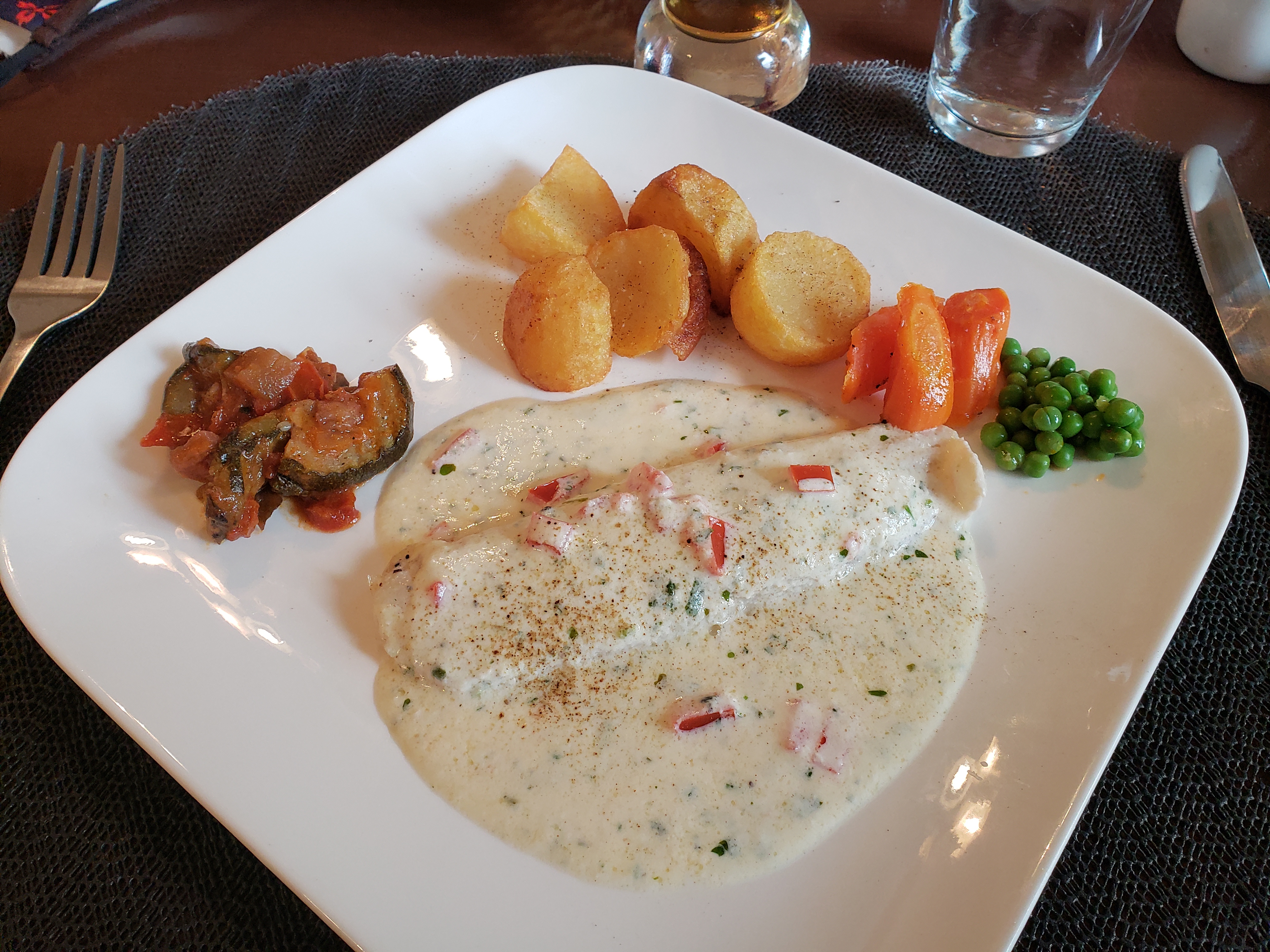 Délicieux repas apprécié entre amis aujourd'hui, beaucoup de nourriture et on nous a demandé à plusieurs reprises si nous voulions plus de légumes, etc. Bien mis en place avec les précautions Covid 19 également.