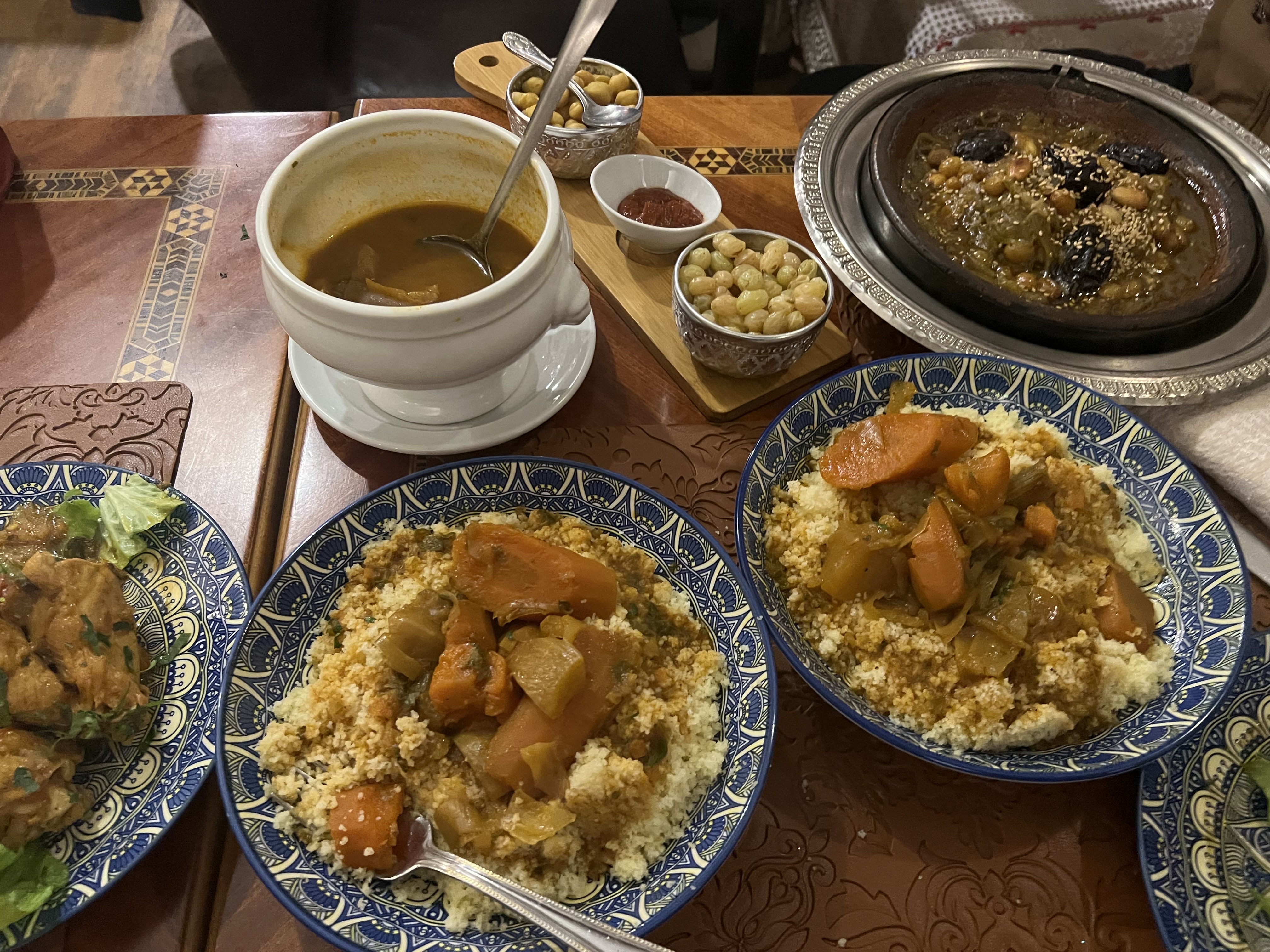 Pas aussi bon que chez ma maman mais tout de même de la bonne cuisine marocaine, à l’exception du tajine de kefta qui était vraiment triste à regarder et pas terrible. On aurait préféré un service plus dynamique.