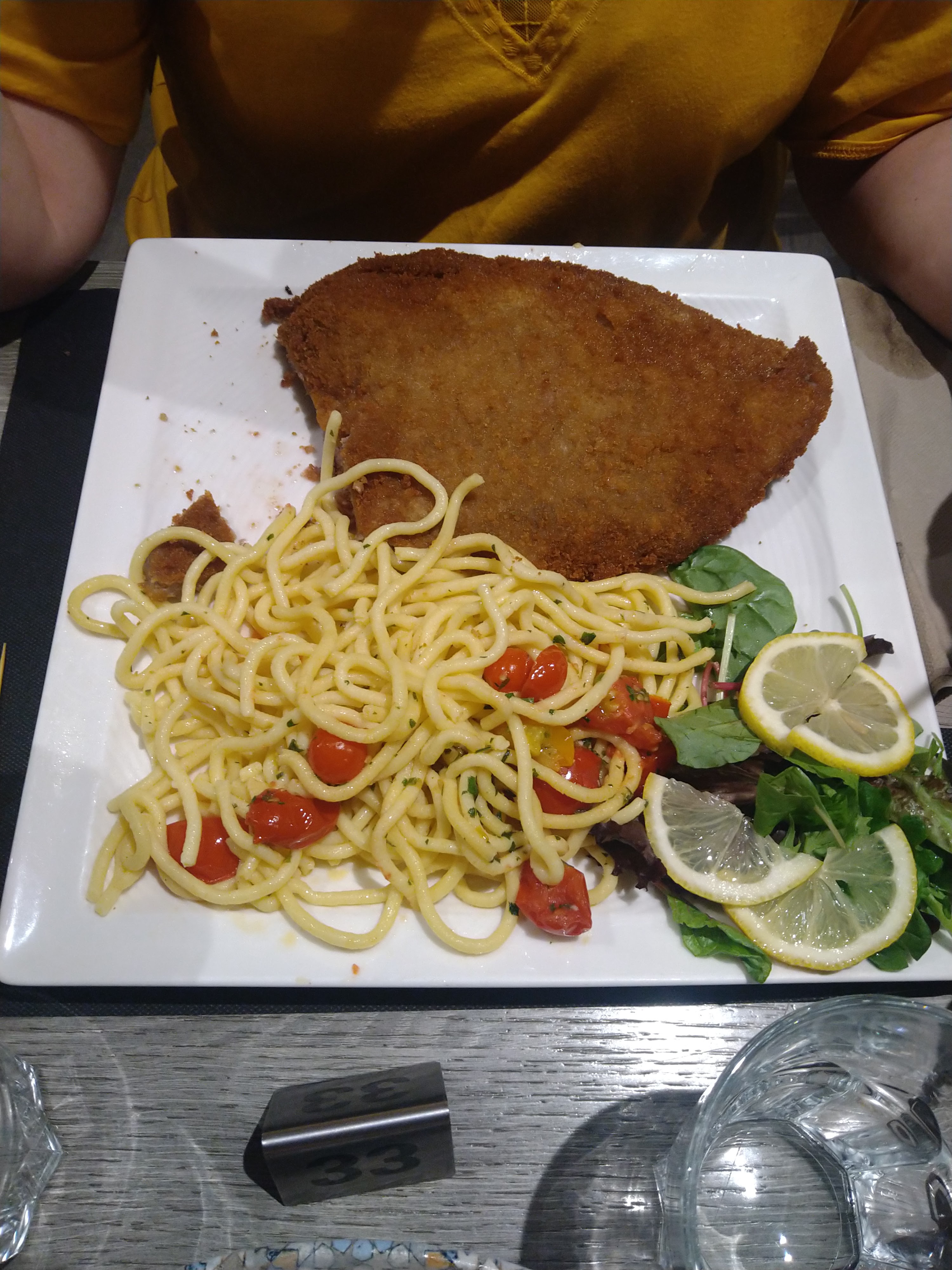 Très bonne escalope milanaise service rapide et agréable. Terrasse ombragée et tables espacées. Ambiance sympa on se sent à l aise et on prend du plaisir.