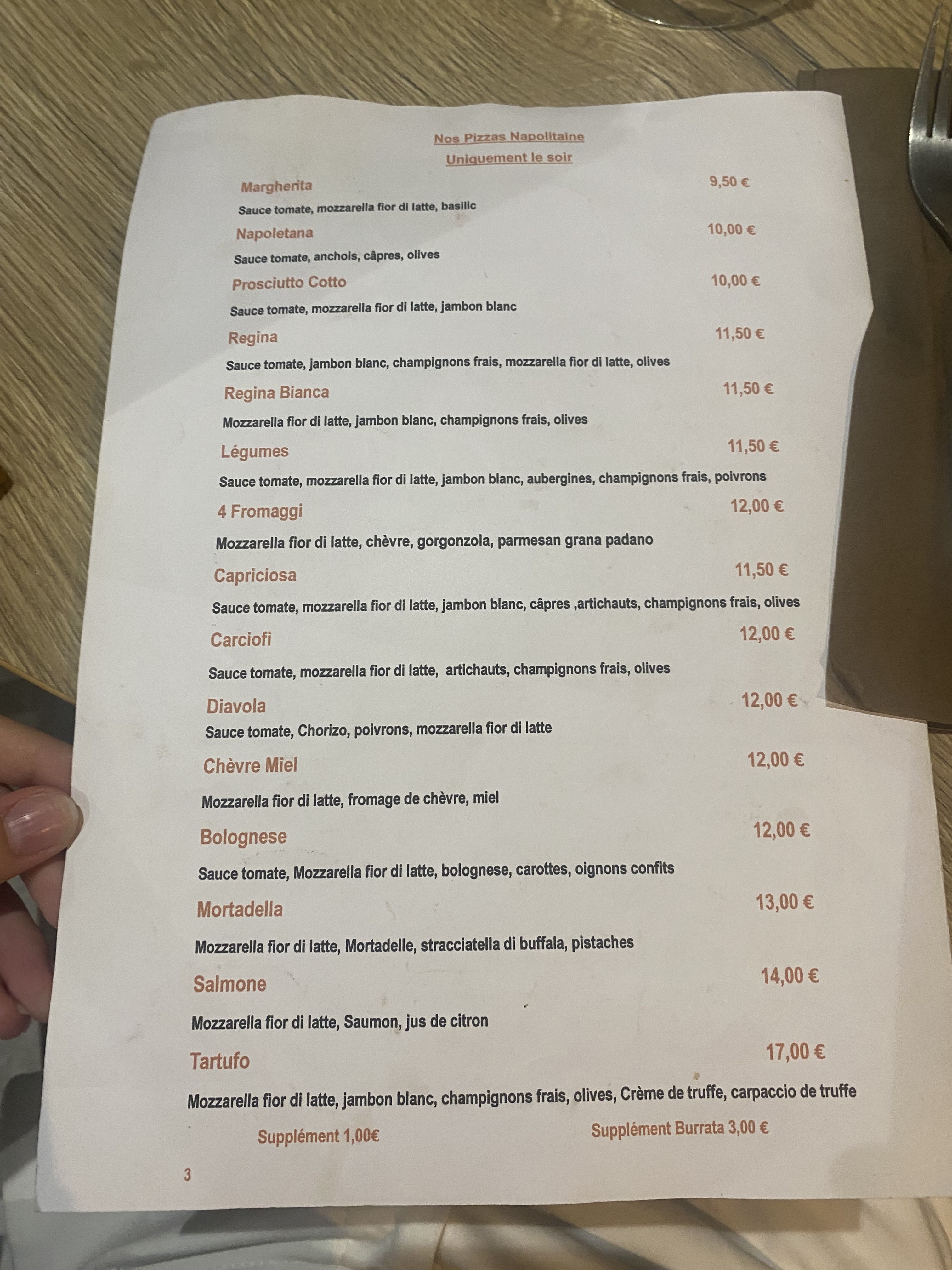 Les pizzas sont classiques, une pâte un peu épaisse mais toutefois très bonne. Le tiramisu a la pistache.... c'est une tuerie Excellente adresse.