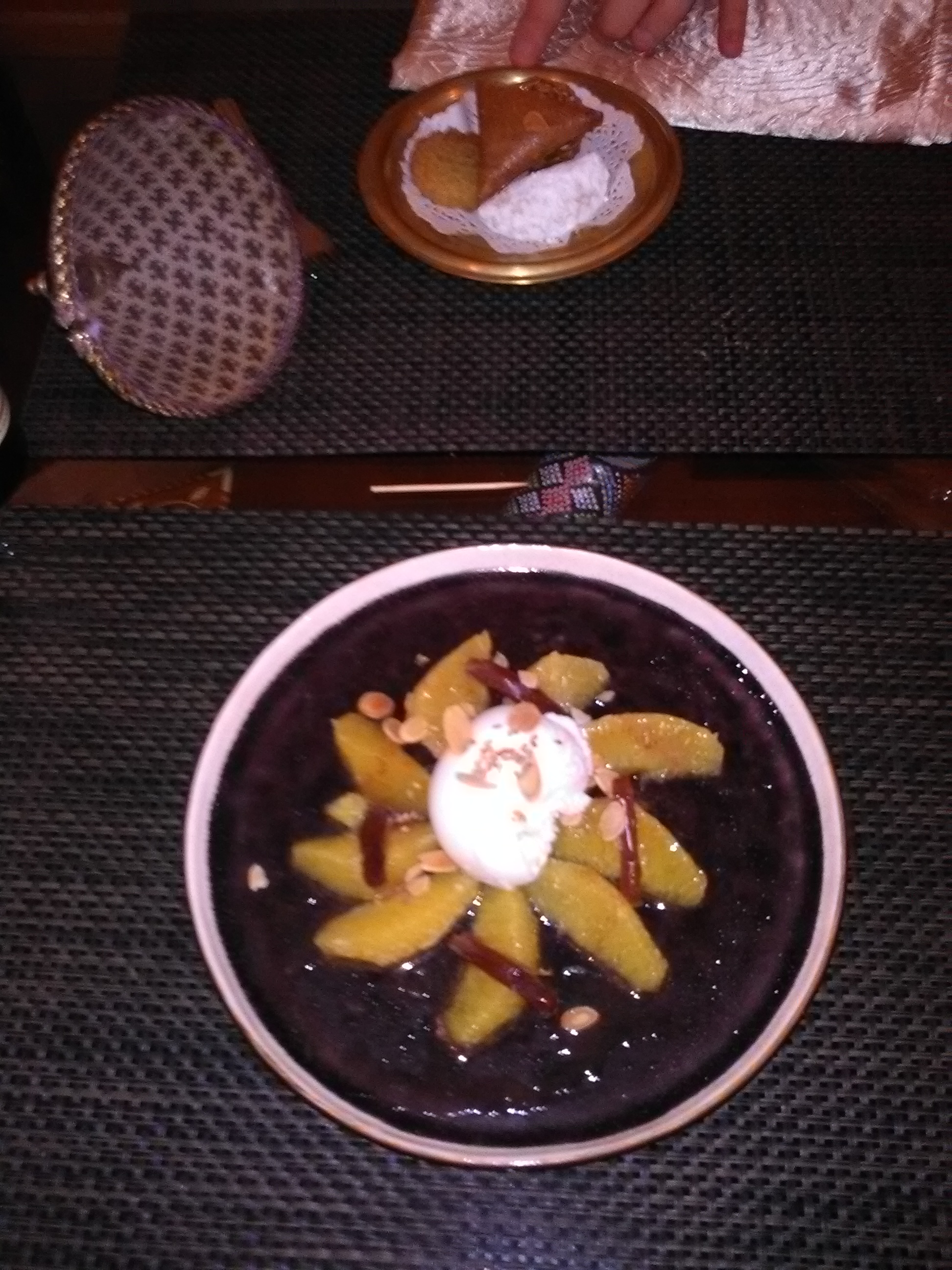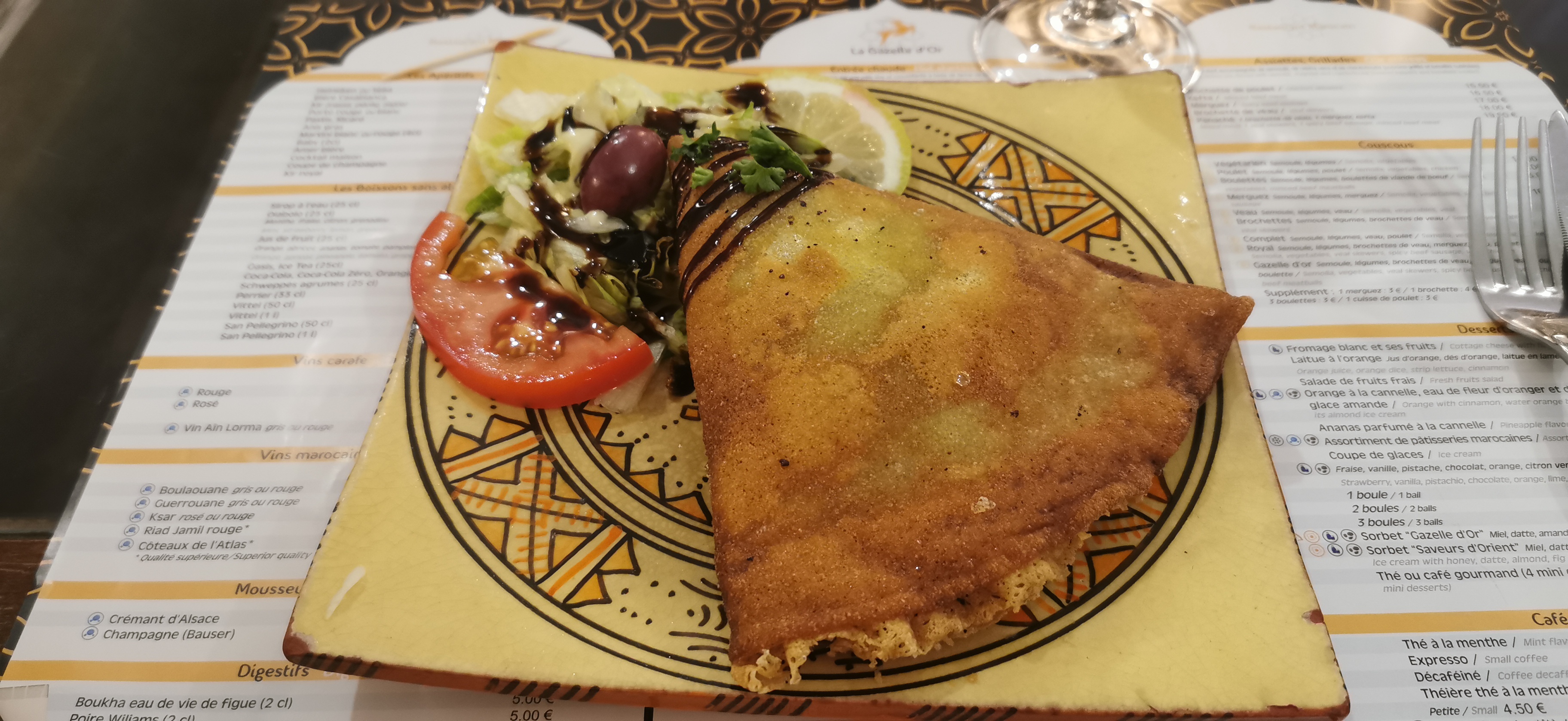 Brick + couscous + gâteaux marocains. Très bon du début à la fin