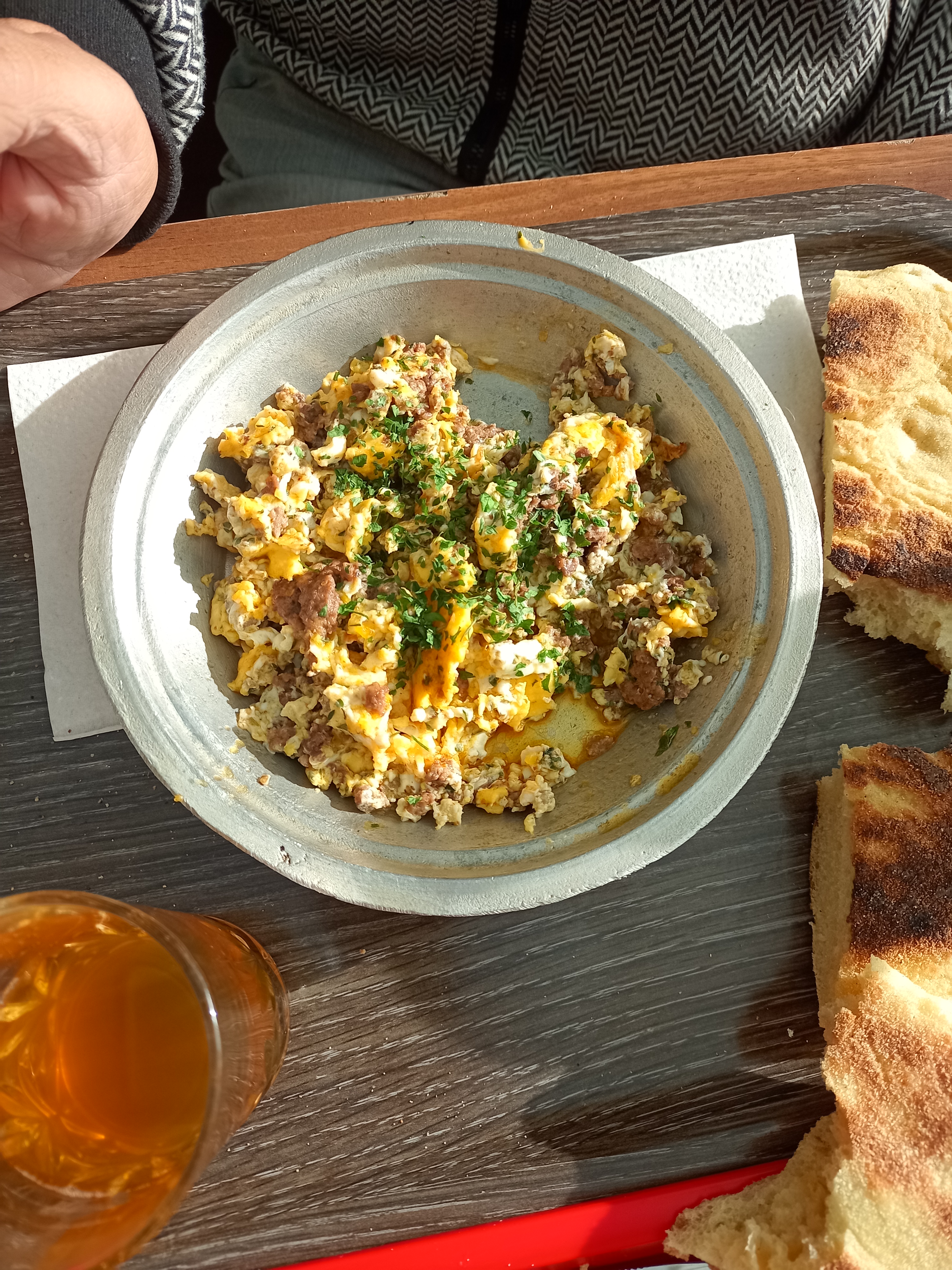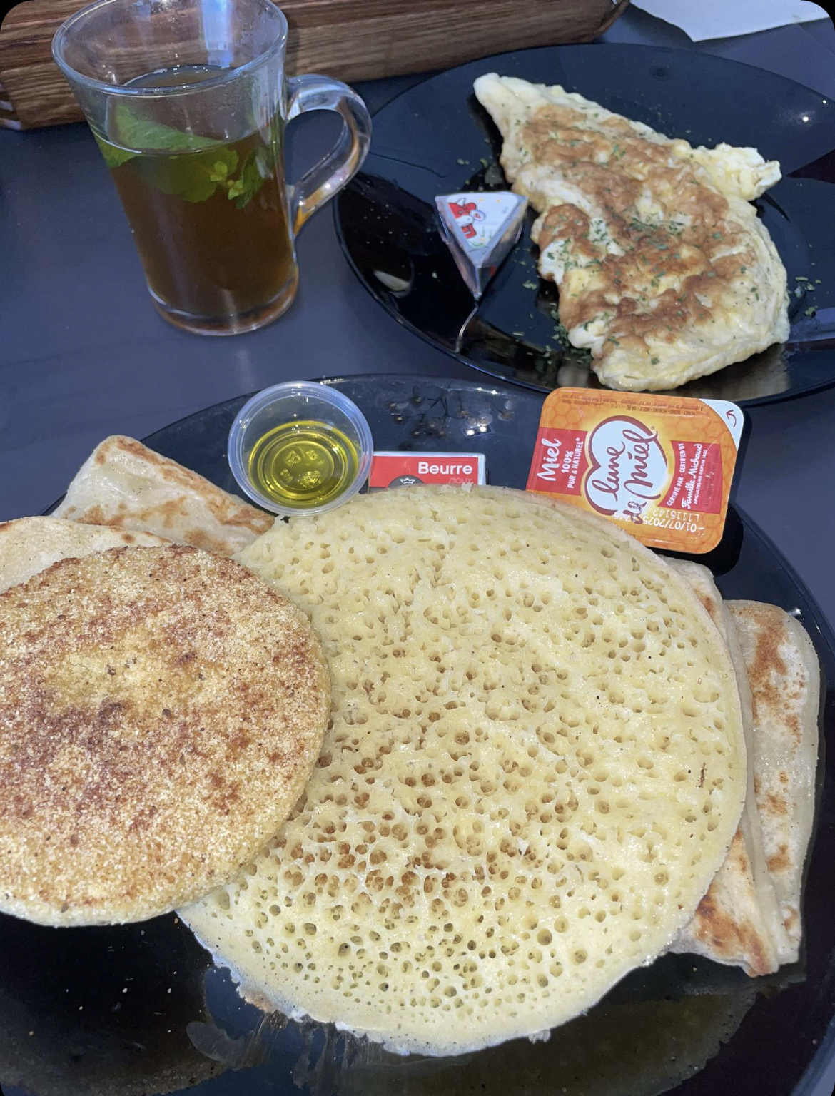 Tres mauvaise experience ,rapport qualite prix mediocre .... Omelette .....no comment l image parle d elle meme. Harira ....avec du persil seché ( infecte) Le beghrir...sec sur le bord comme on les aimes quand ils sont décongelé et cahuffer au micro onde depuis 20 min.... Et alors le the amer et le jus d orange hamed ....le combo parfait pr les brûlures d estomacs Attention au public averti....ca n est pas du tt la cuisine de vos mamans ...dommage car l idee etait bonne mais lorque l on facture 14 eur un petit dej ...on ne peux pas passer à côté du service (inexistant ET de la qualité !!!!