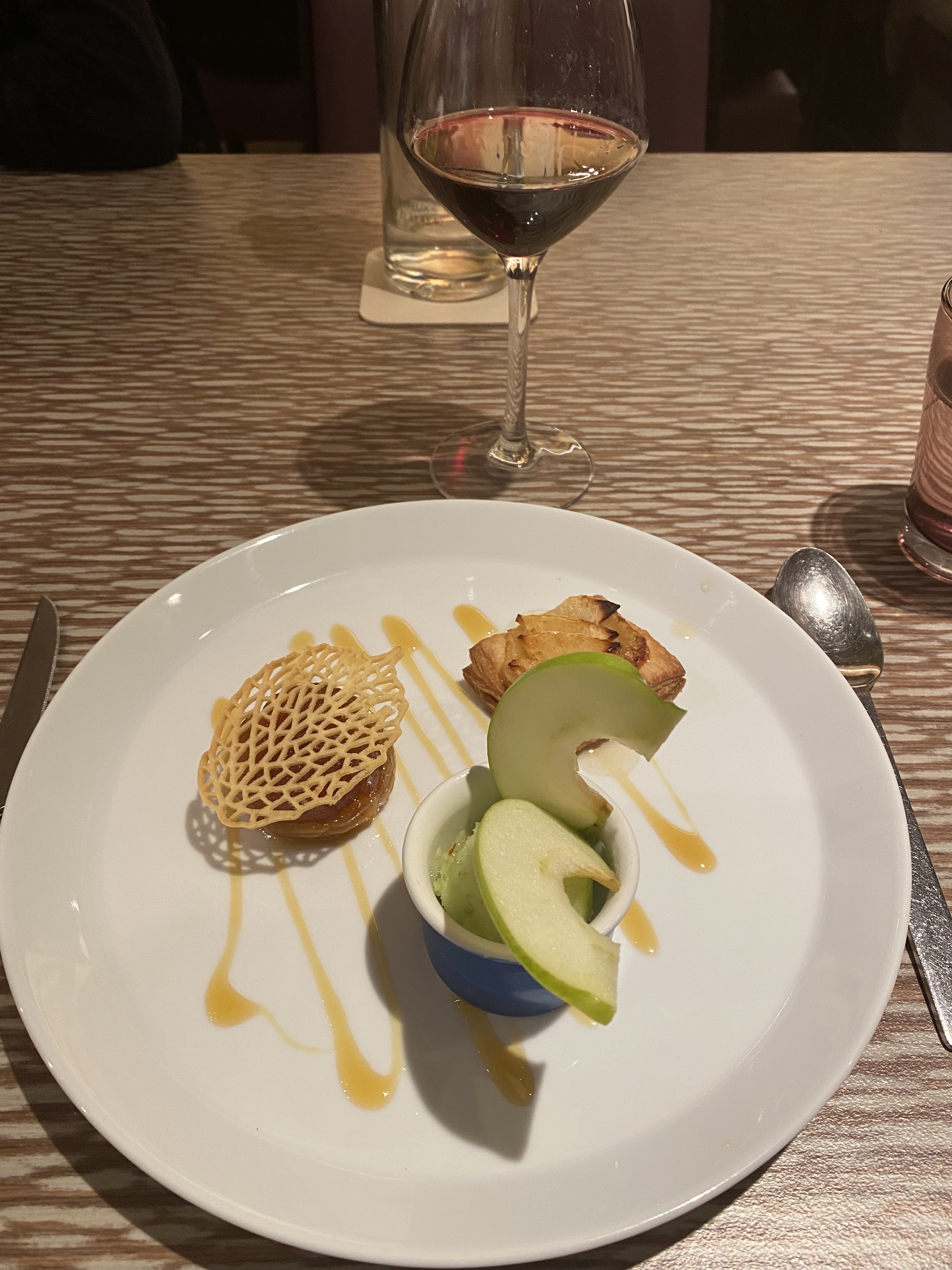 Le dessert du menu à 26 euros devrait être servi dans des assiettes moins bruyantes. Trop granuleuse. Sinon, trop bon. Je recommande.