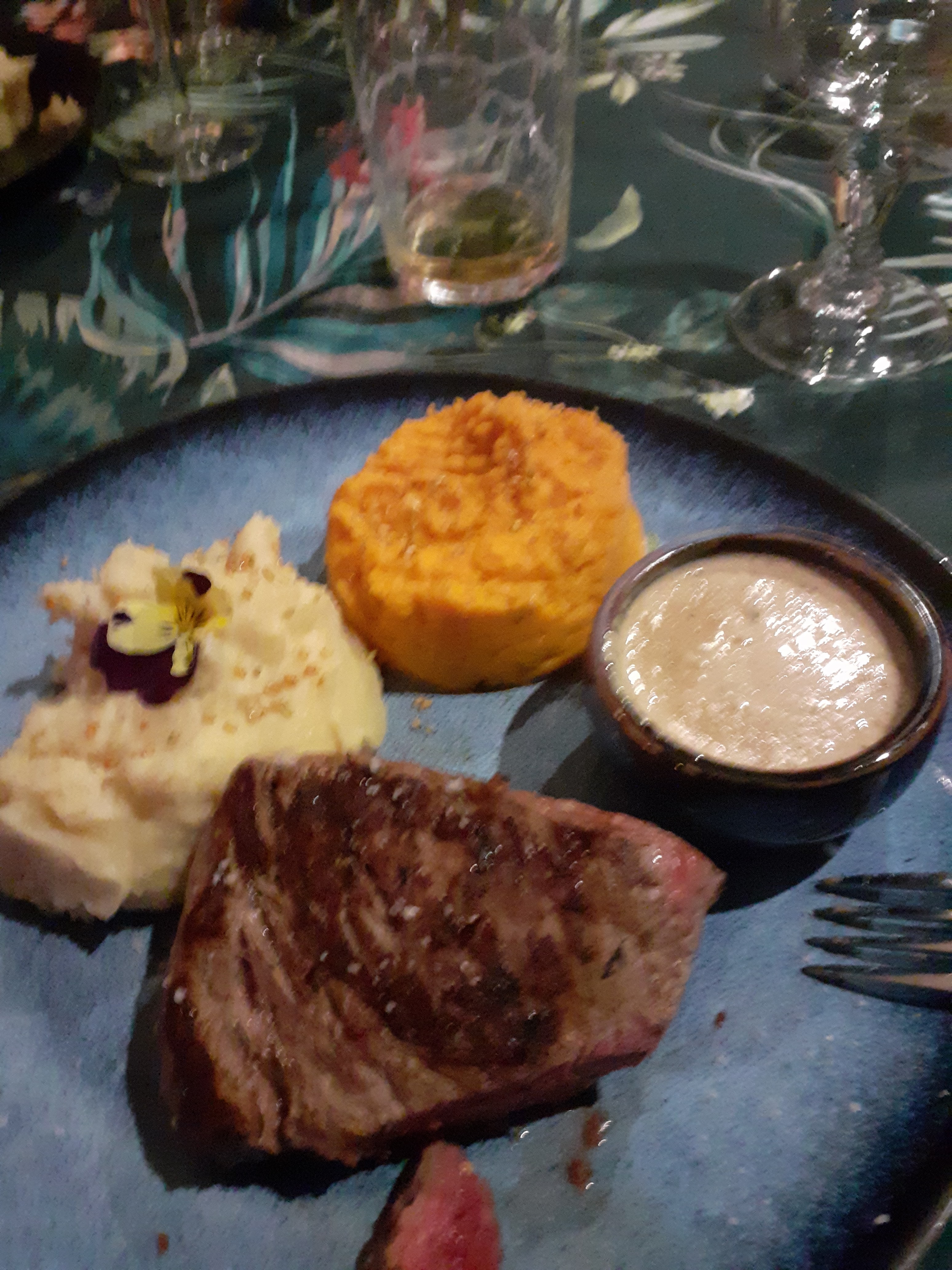 Je suis plutôt exigeant en matière culinaire et j’ai beaucoup apprécié l’association des différents goûts de mon sanglier avec l’accompagnement et le dessert simple mais extra. Ambiance cosy psychédélique qui vous fera passer un moment sur une autre planète !