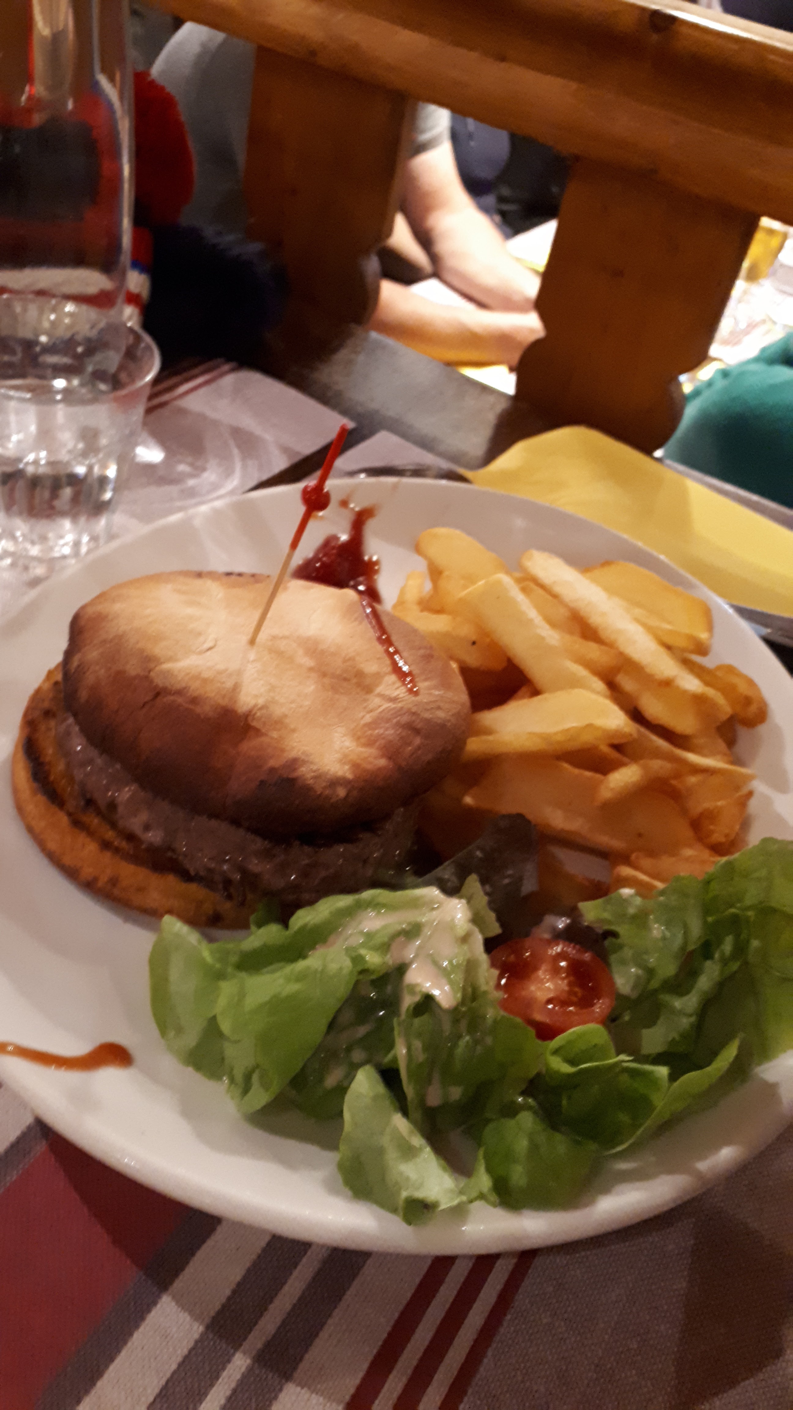 Ce soir-là, il fait une chaleur insupportable dans le restaurant. Les quantités sont légères et les prix sont élevés. Le Burger est bon. La tartiflette est moyenne et chère (23 €) Belle décoration, locale et typique Je mets 4 étoiles
