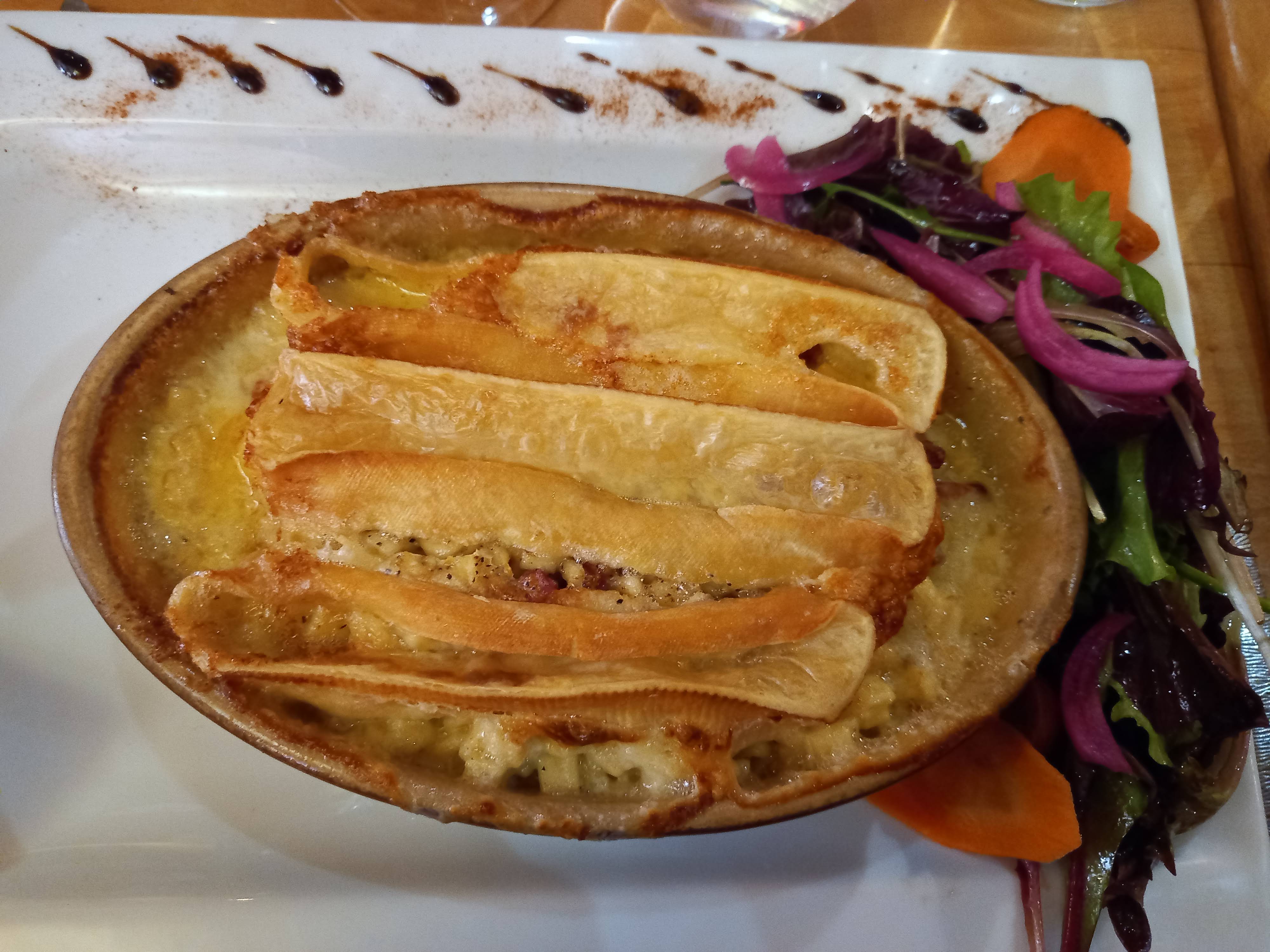 Plat très copieux et très bon. Croziflette et camembert rôti au top.
