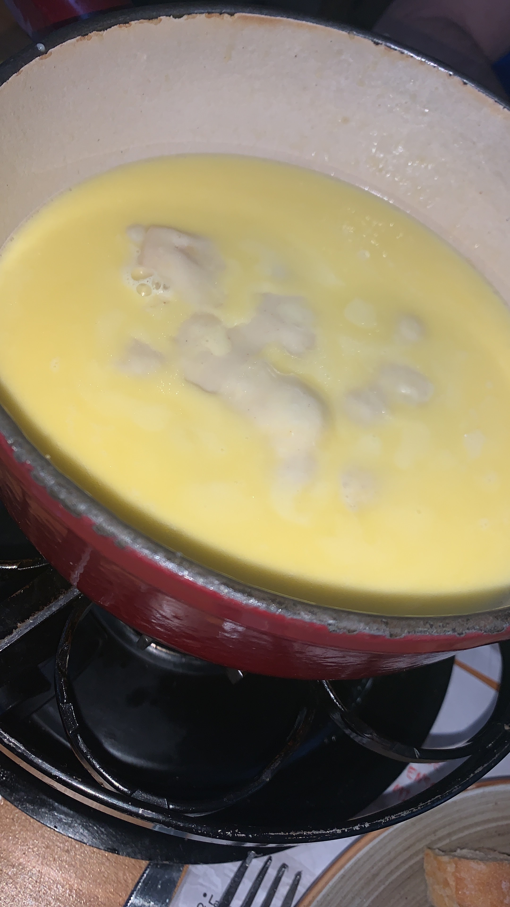 Fondue immangeable! Nous avons été très vite pousser vers la sortie pour accueillir d’autre personnes ….